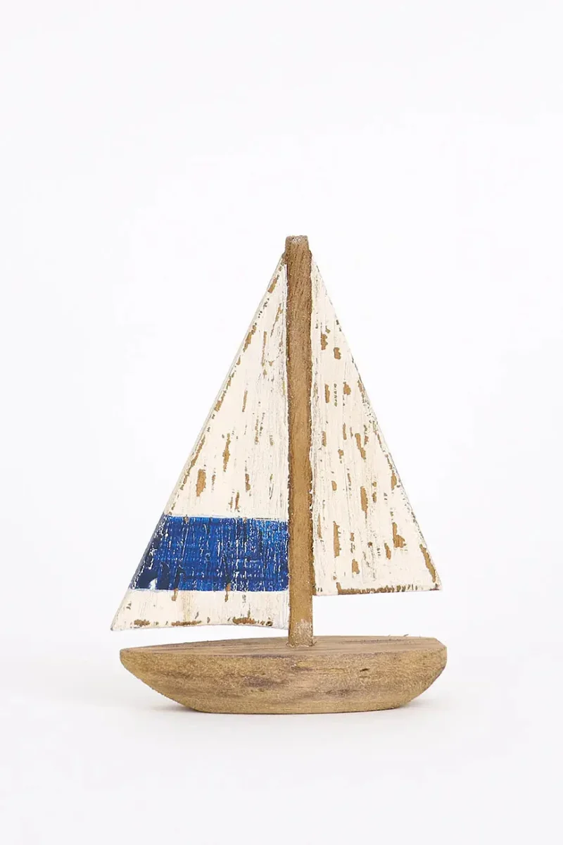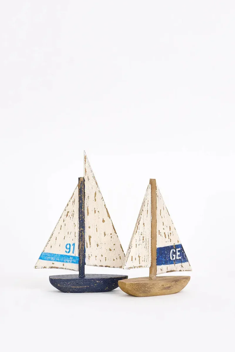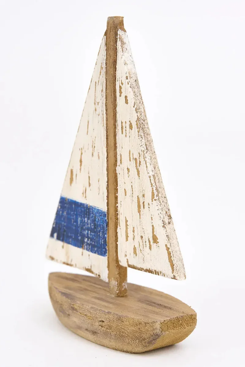 Pequeño velero decorativo en madera envejecida. Este encantador velero decorativo, elaborado en madera envejecida aporta carácter y un toque rústico a cualquier espacio. Ideal para decorar estanterías, mesas o escritorios, este velero es perfecto para quienes desean incorporar un elemento marino con encanto vintage.