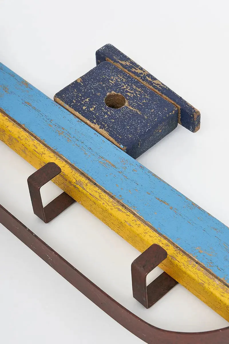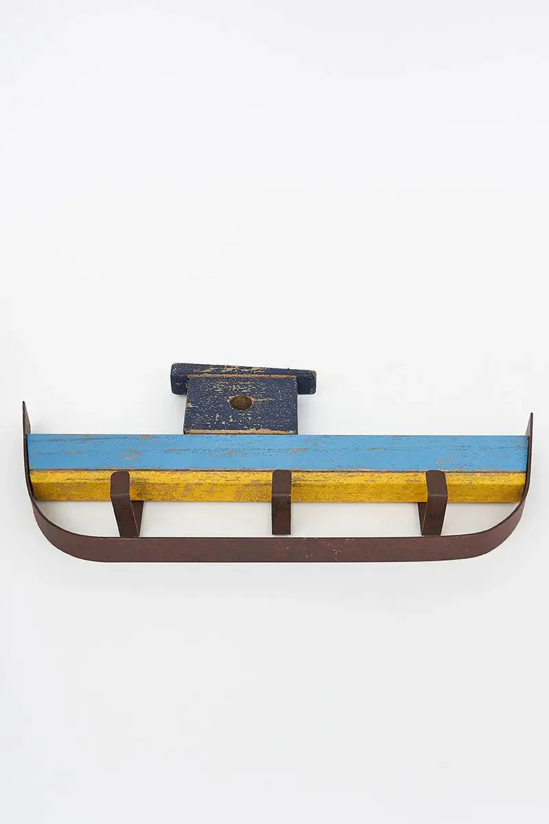 Perchero con forma de barco. Está hecho en madera y metal y tiene un aspecto envejecido realmente atractivo.