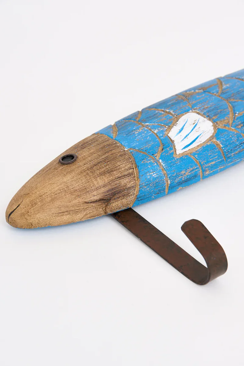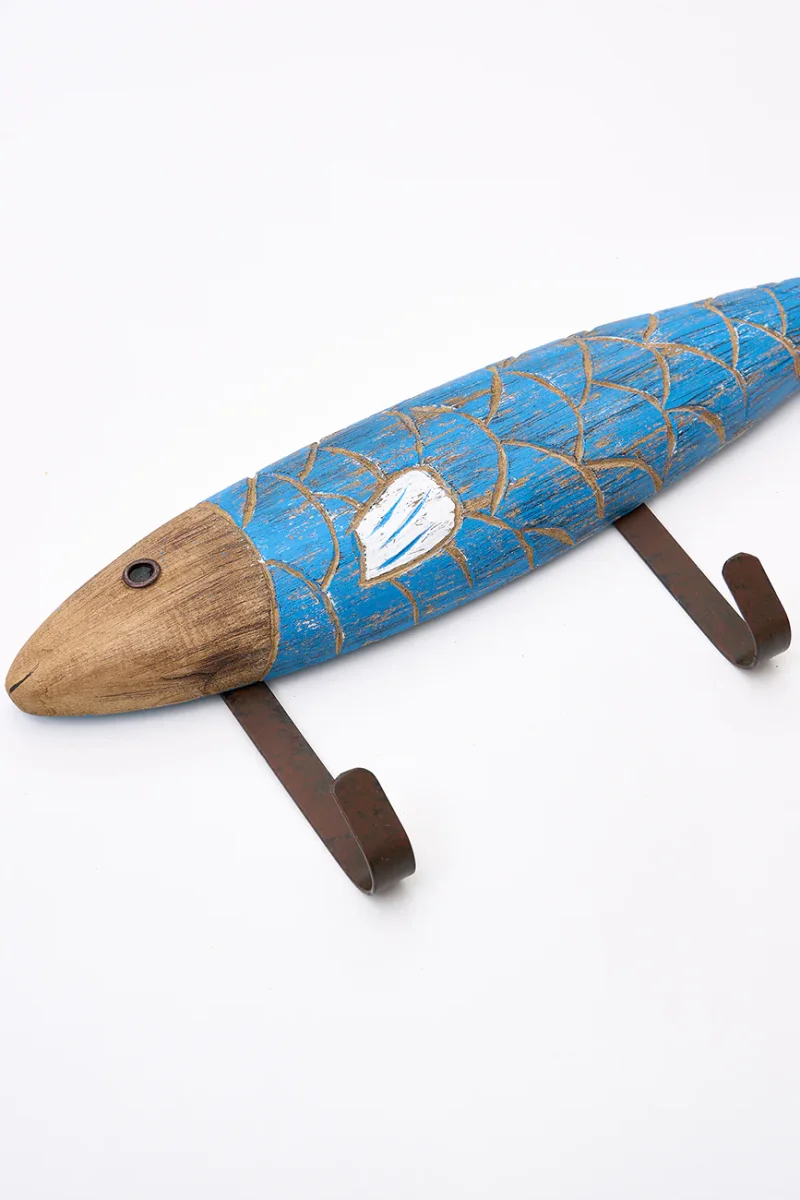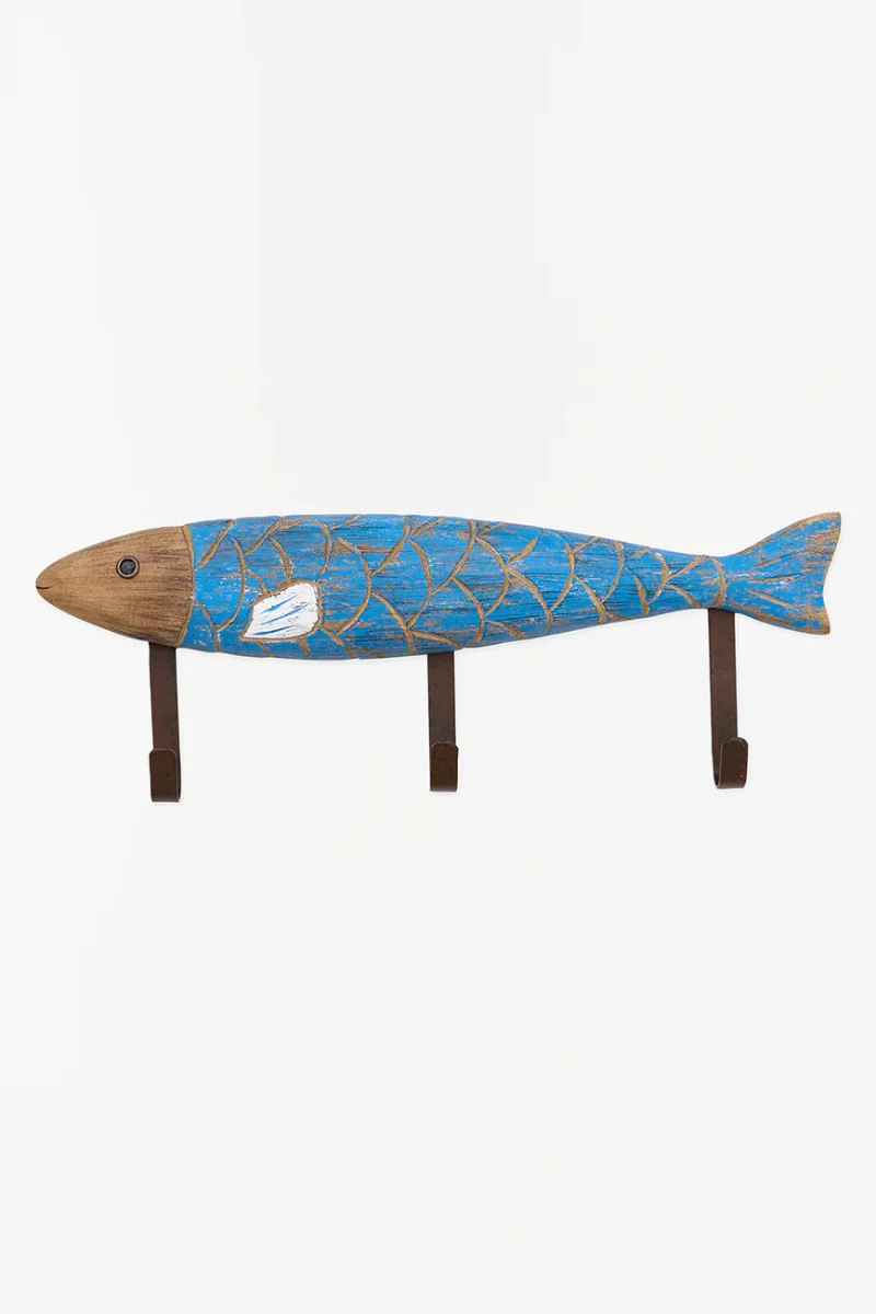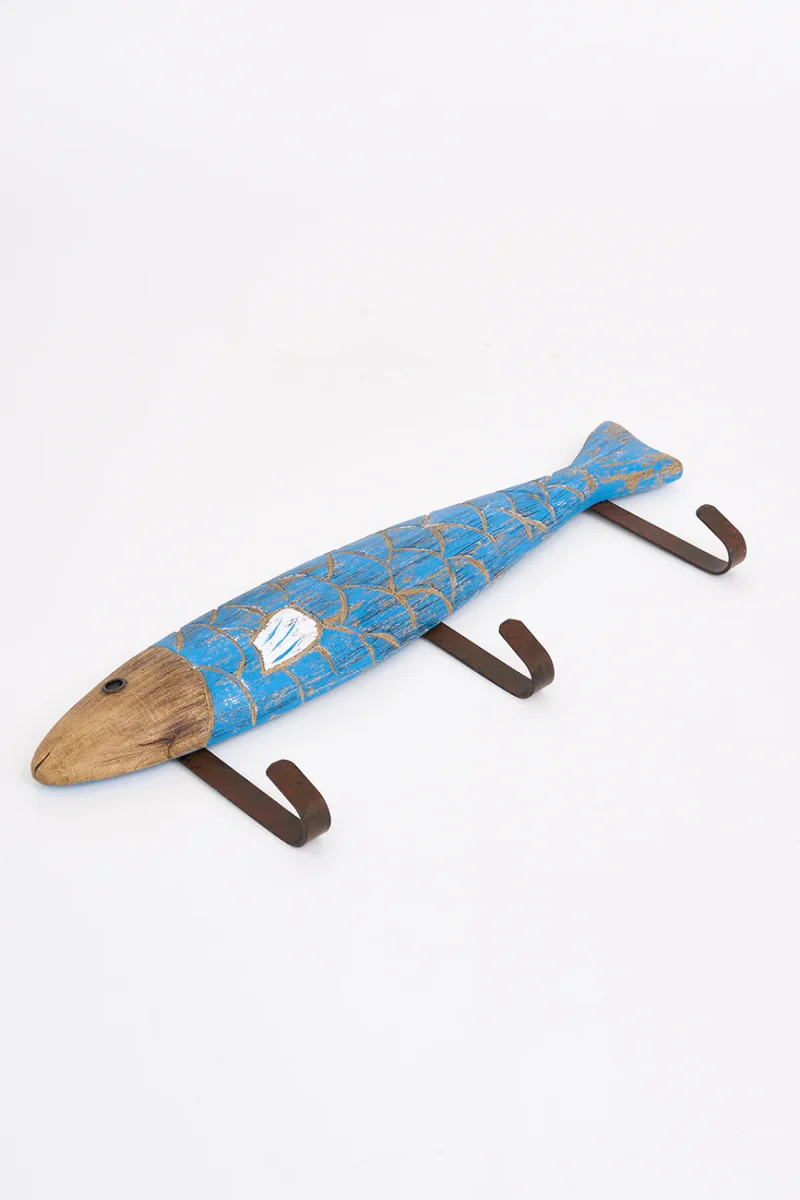 Perchero de 3 colgadores con forma de pez y acabado envejecido.