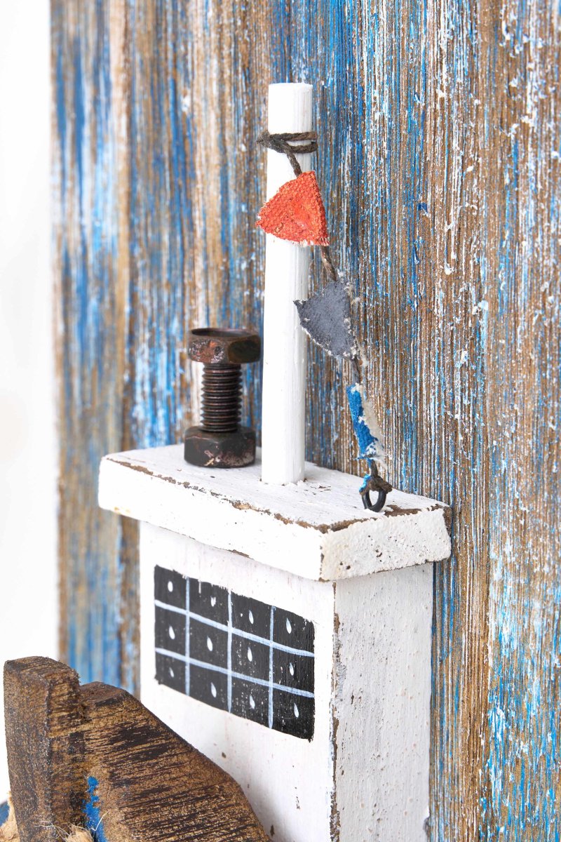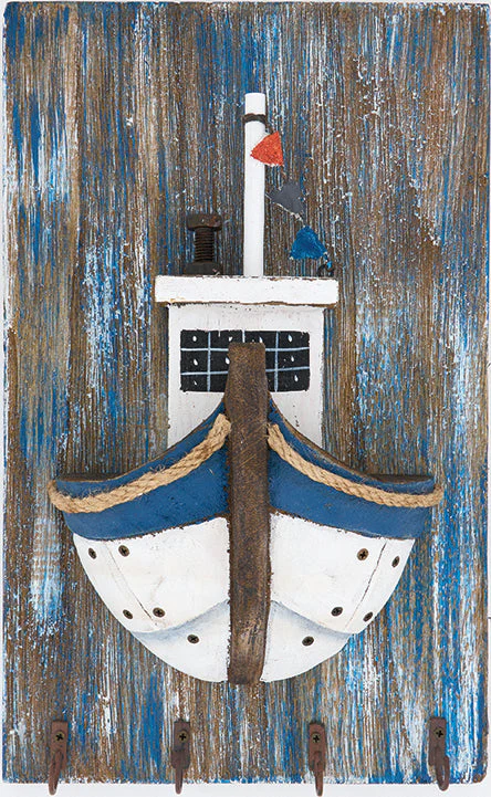 Perchero de madera con barco pesquero
