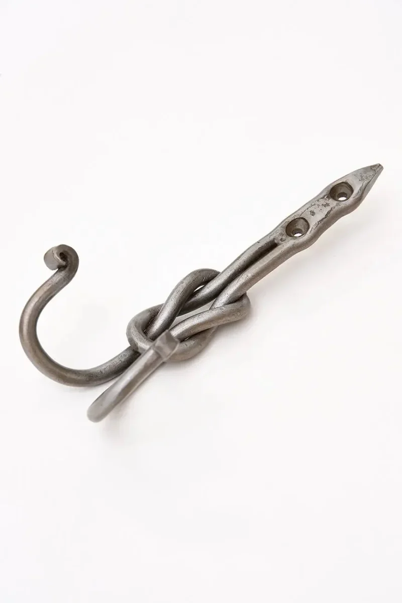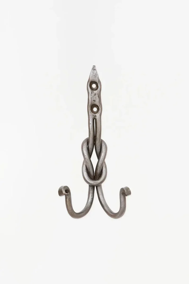 Perchero de metal con forma de nudo marinero y dos colgadores. Artículo que dota de un aroma marinero el rincón del hogar donde se coloque.