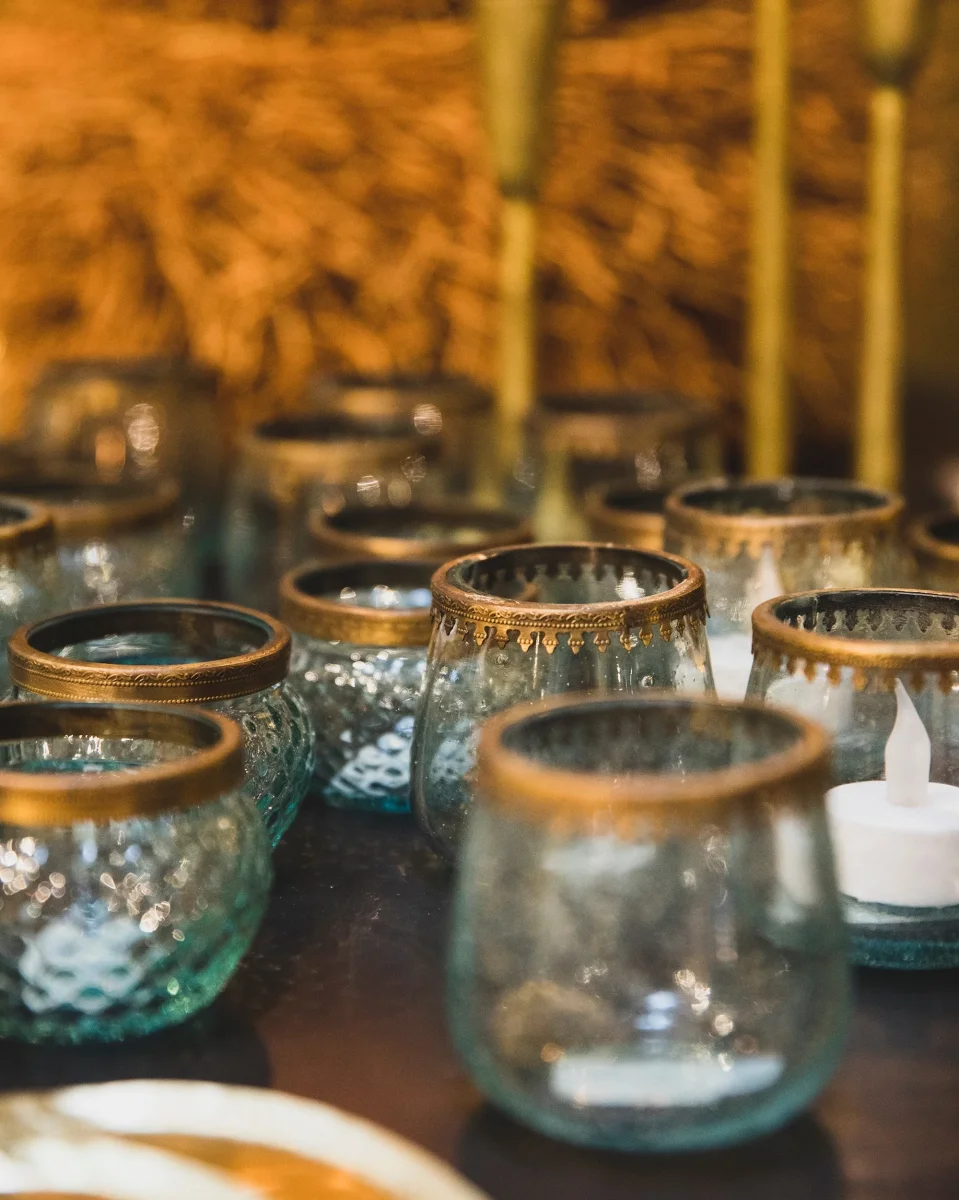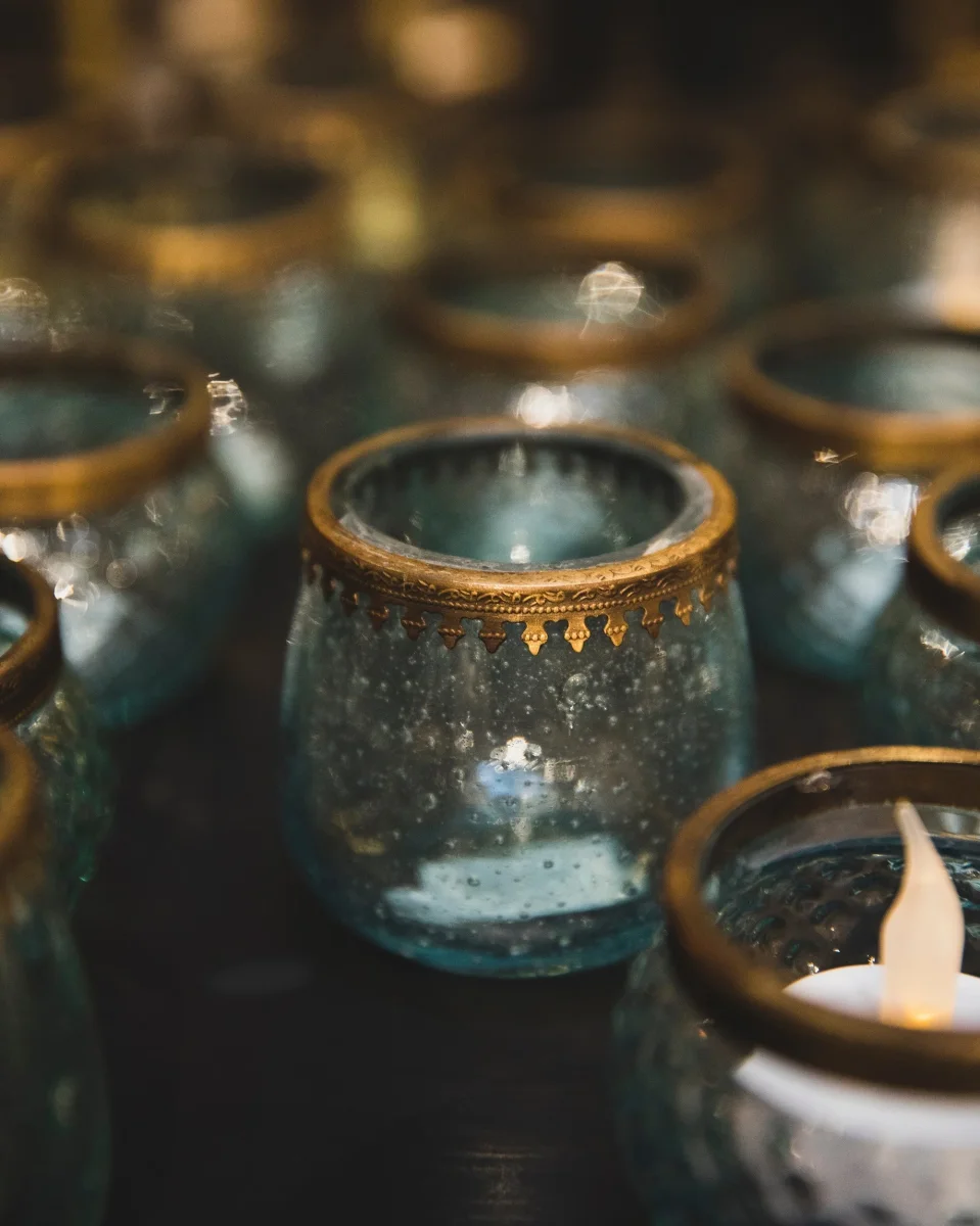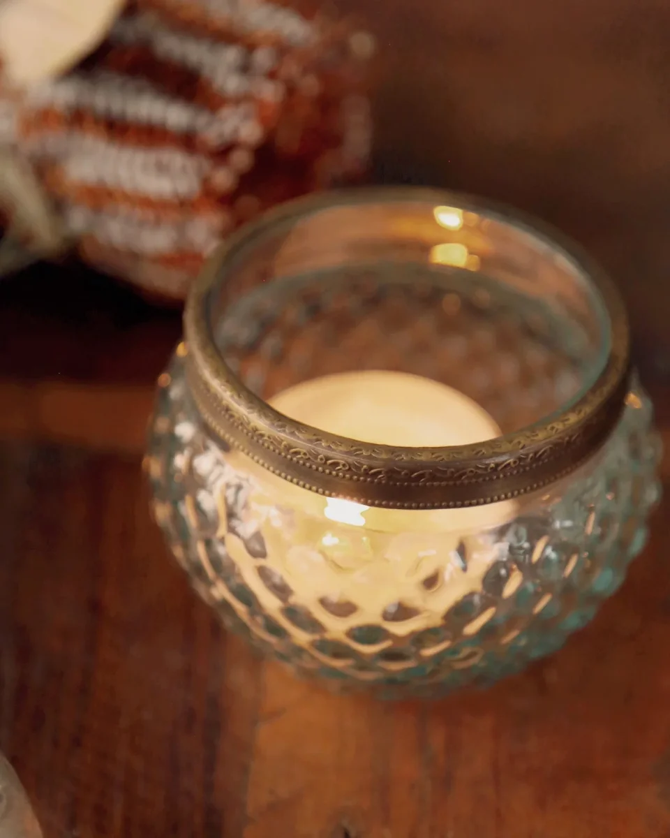 À la lueur d’une bougie, la lumière se diffuse à travers le verre et révèle subtilement sa texture, créant un éclat doux et vivant.