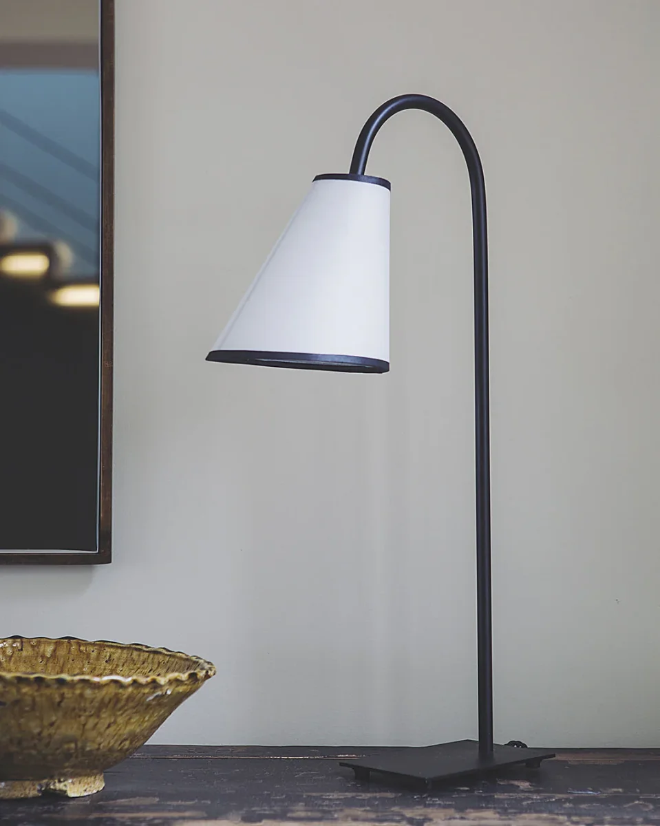 Le pied de lampe à poser Ella est en acier brut.