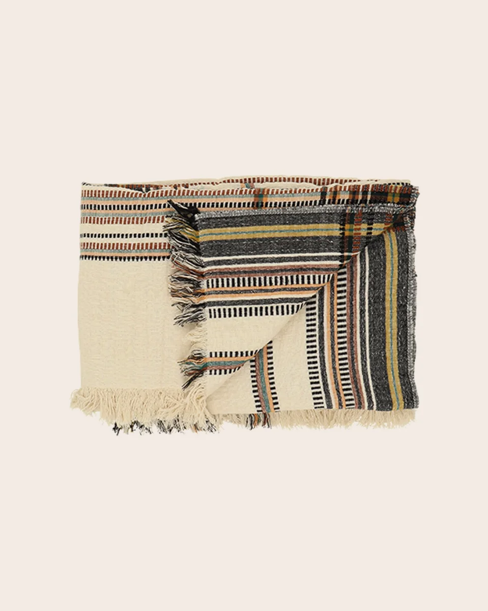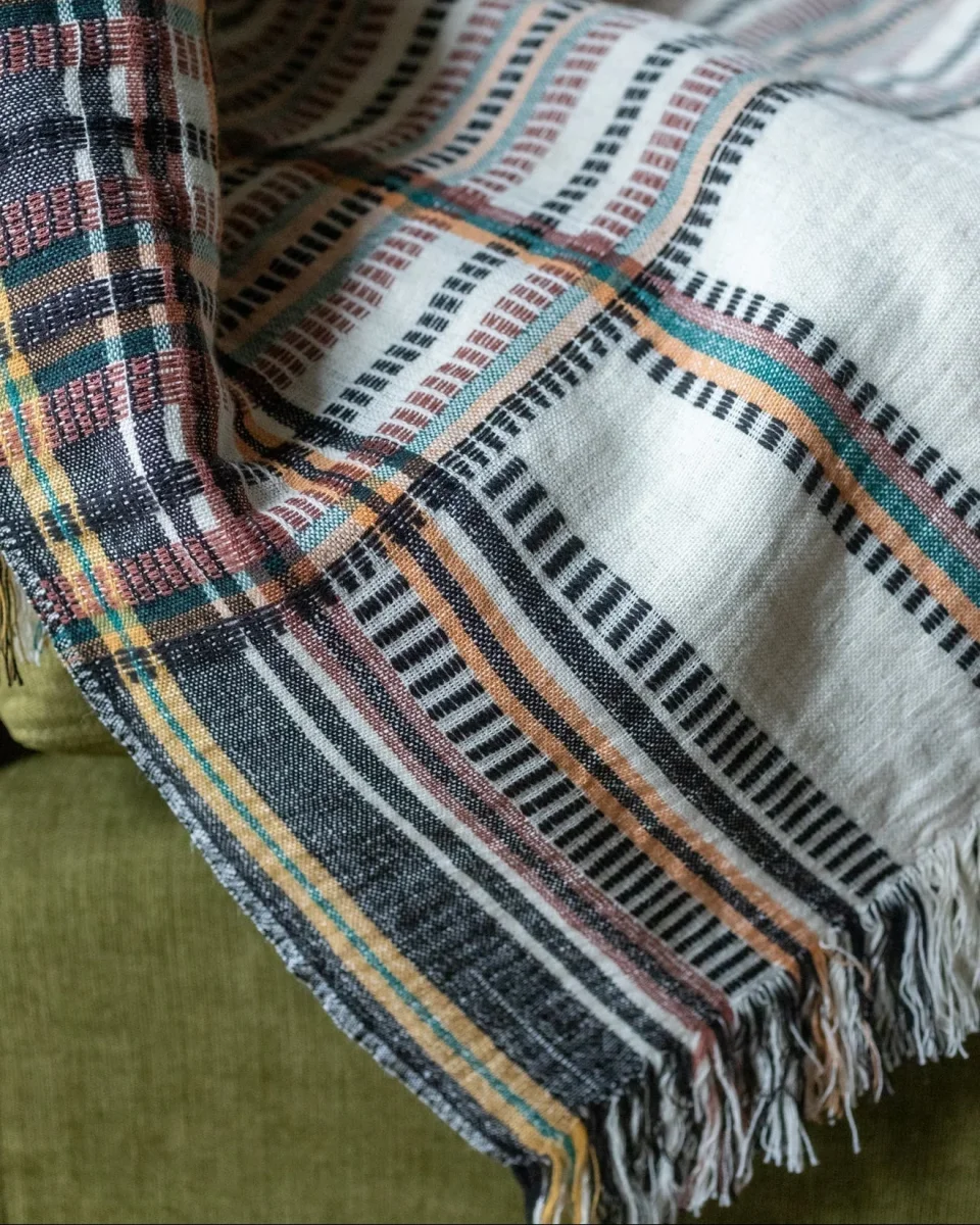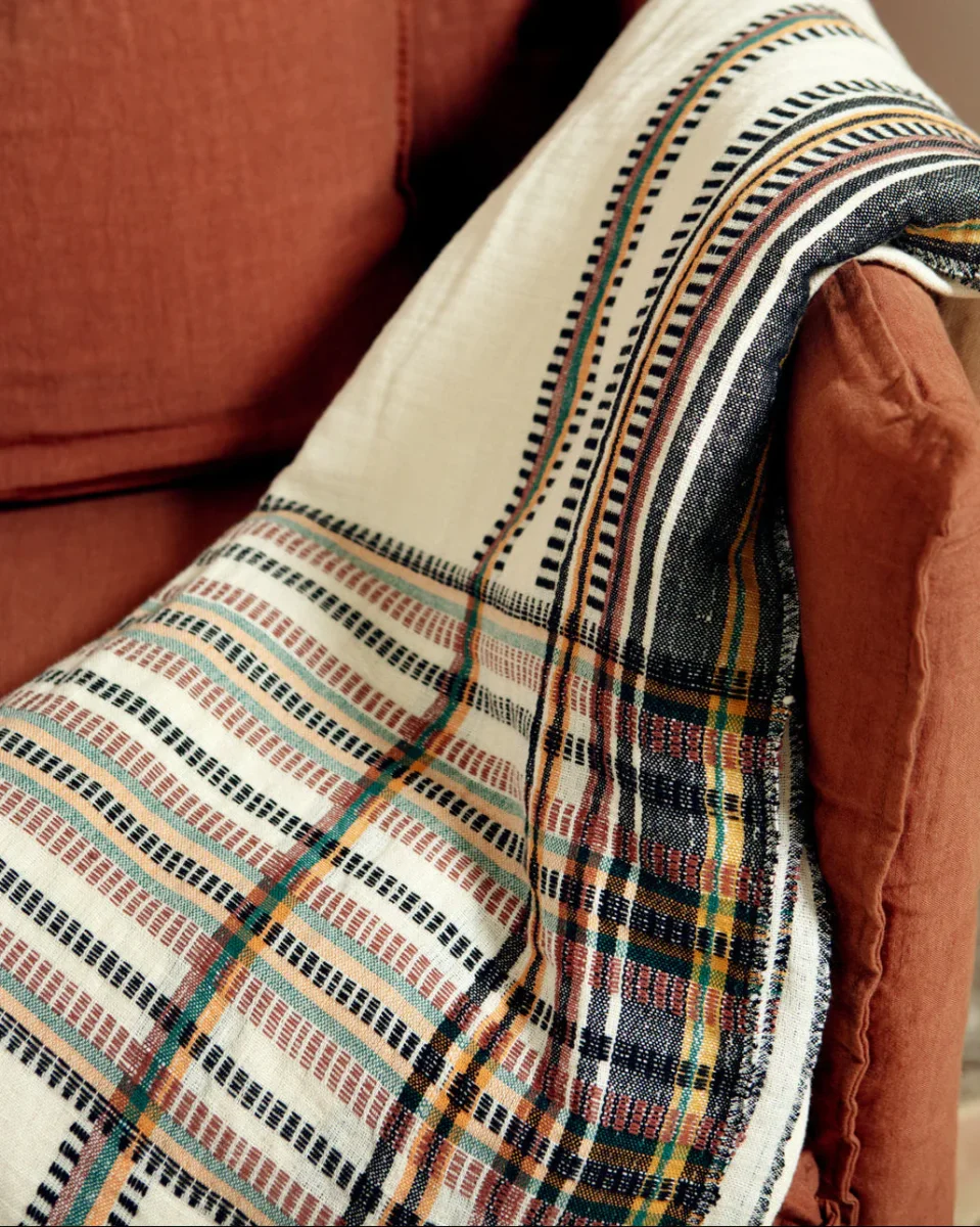 Permettez à vos mains d’explorer la texture de notre plaid Banai. Le lin procure une expérience apaisante, travaillé avec finesse dans une texture élégante, agrémenté de broderies réalisées à la machine et conçu avec soin par des artisans indiens. Ce plaid marie subtilement authenticité et simplicité.