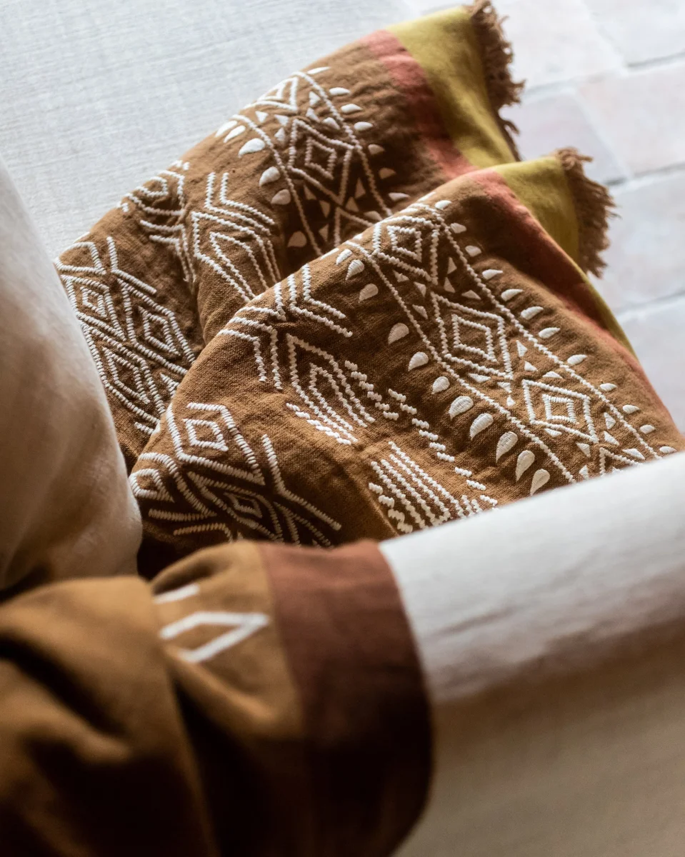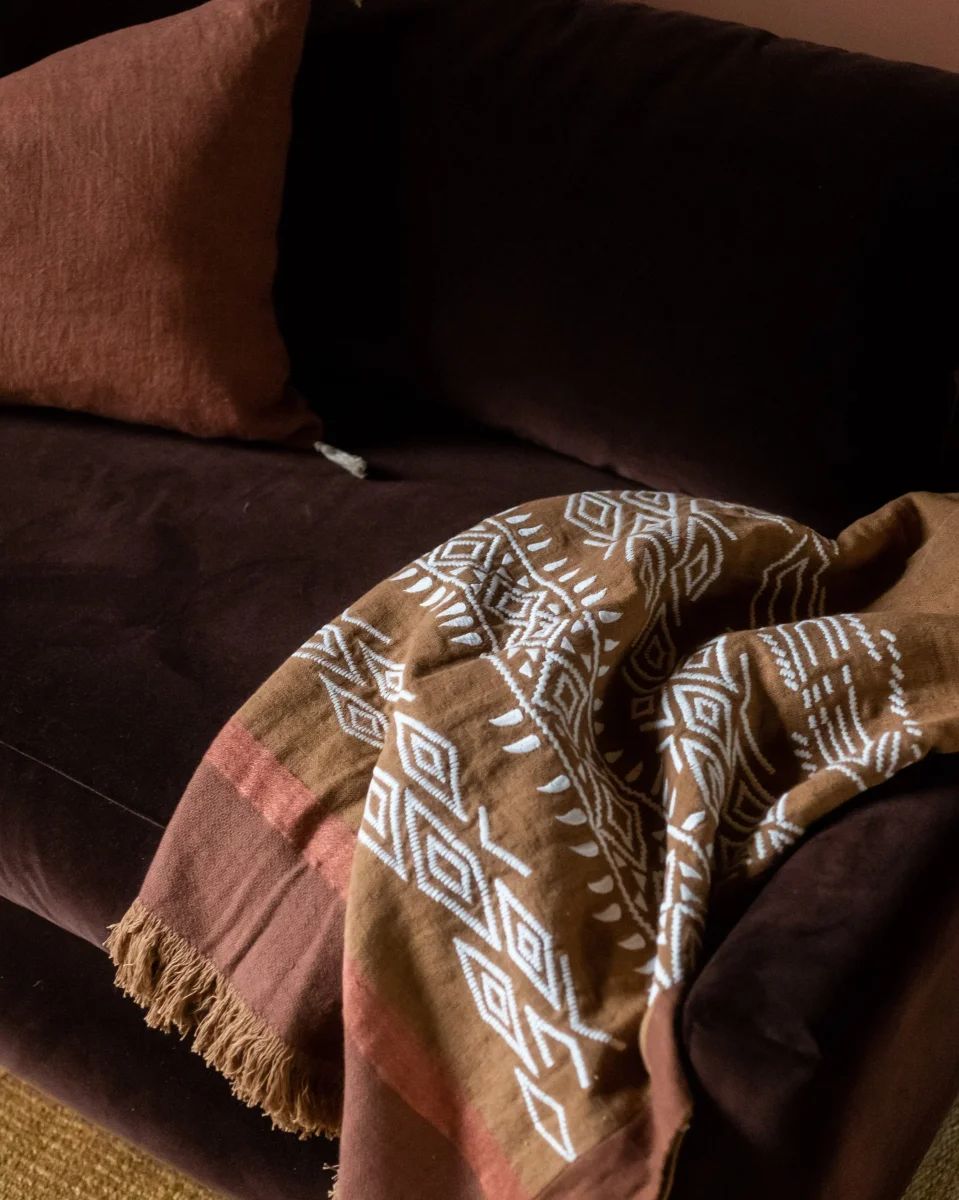 Ses motifs géométriques, à la fois sobres et captivants, trouvent leur place dans chaque décor : pour habiller un canapé ou en compagnon pour réchauffer vos soirées fraîches.
