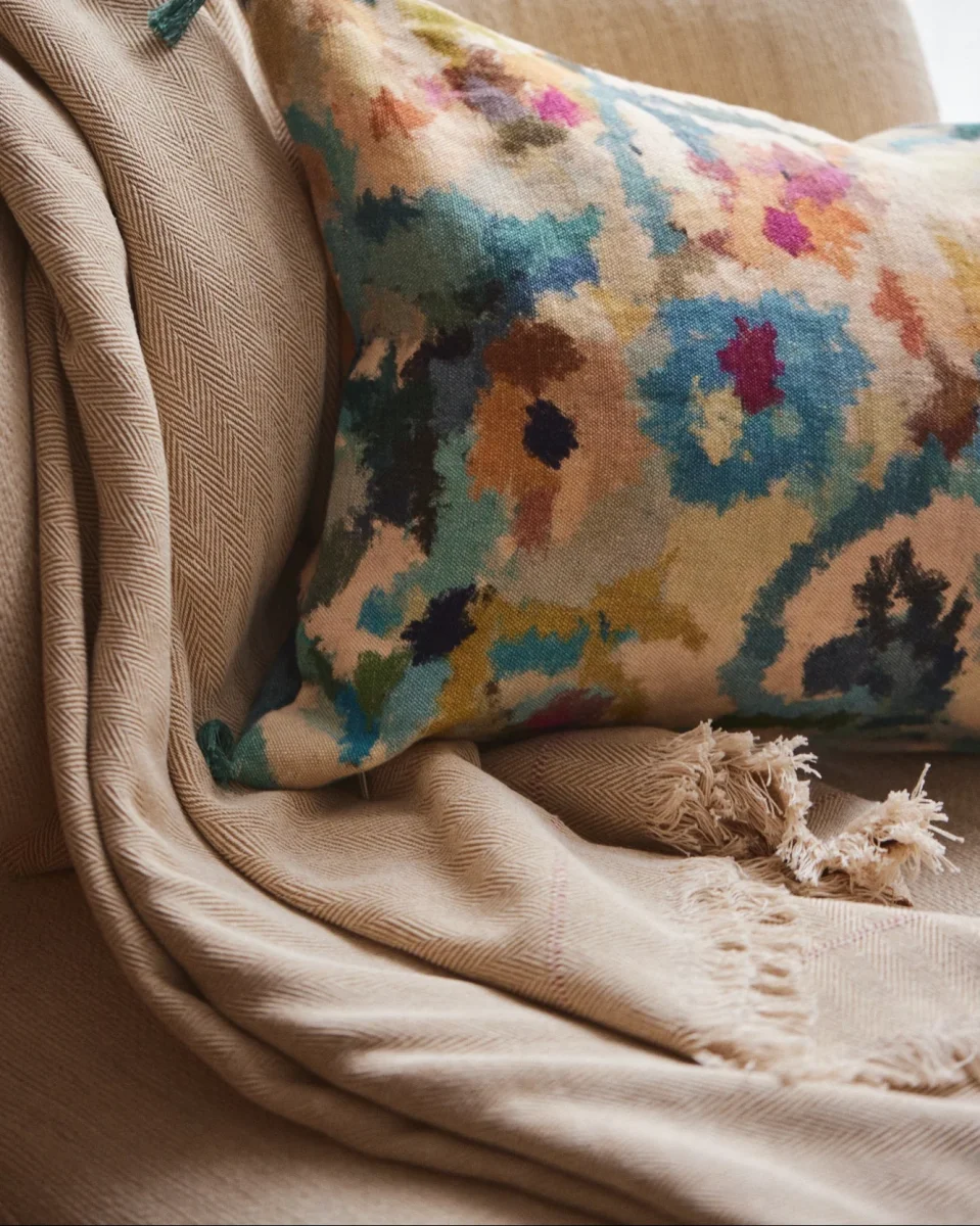 Le plaid Herringo réinvente le tissage chevrons avec ses trois couleurs qui s’entrelacent dans un ensemble vibrant : de l’encre très foncée qui flirte avec le noir pour la profondeur, du blanc pour la lumière, et du curcuma pour l’impertinence. Tissé à la main en Inde, Herringo a tout du plaid douillet grâce à son […]