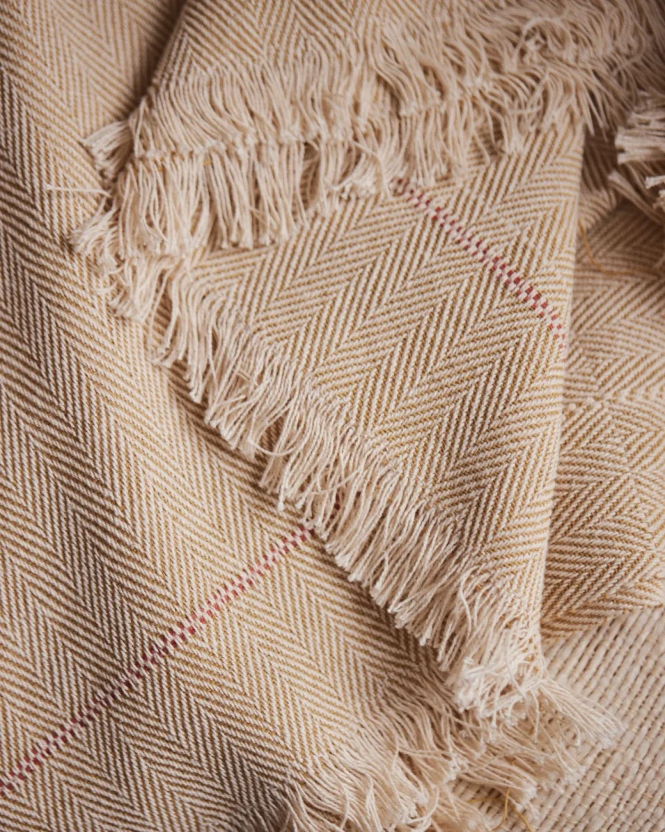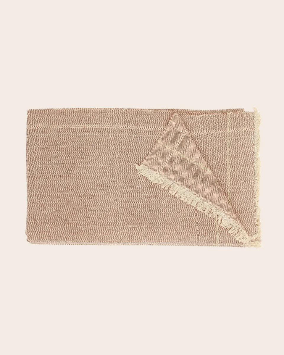 Tissé à la main en Inde, Herringo a tout du plaid douillet grâce à son coton épais et généreux. De part et d’autre, une ligne Rooibos vient ponctuer l’ensemble, et vient apporter la petite touche en plus à son aspect si peu banal.