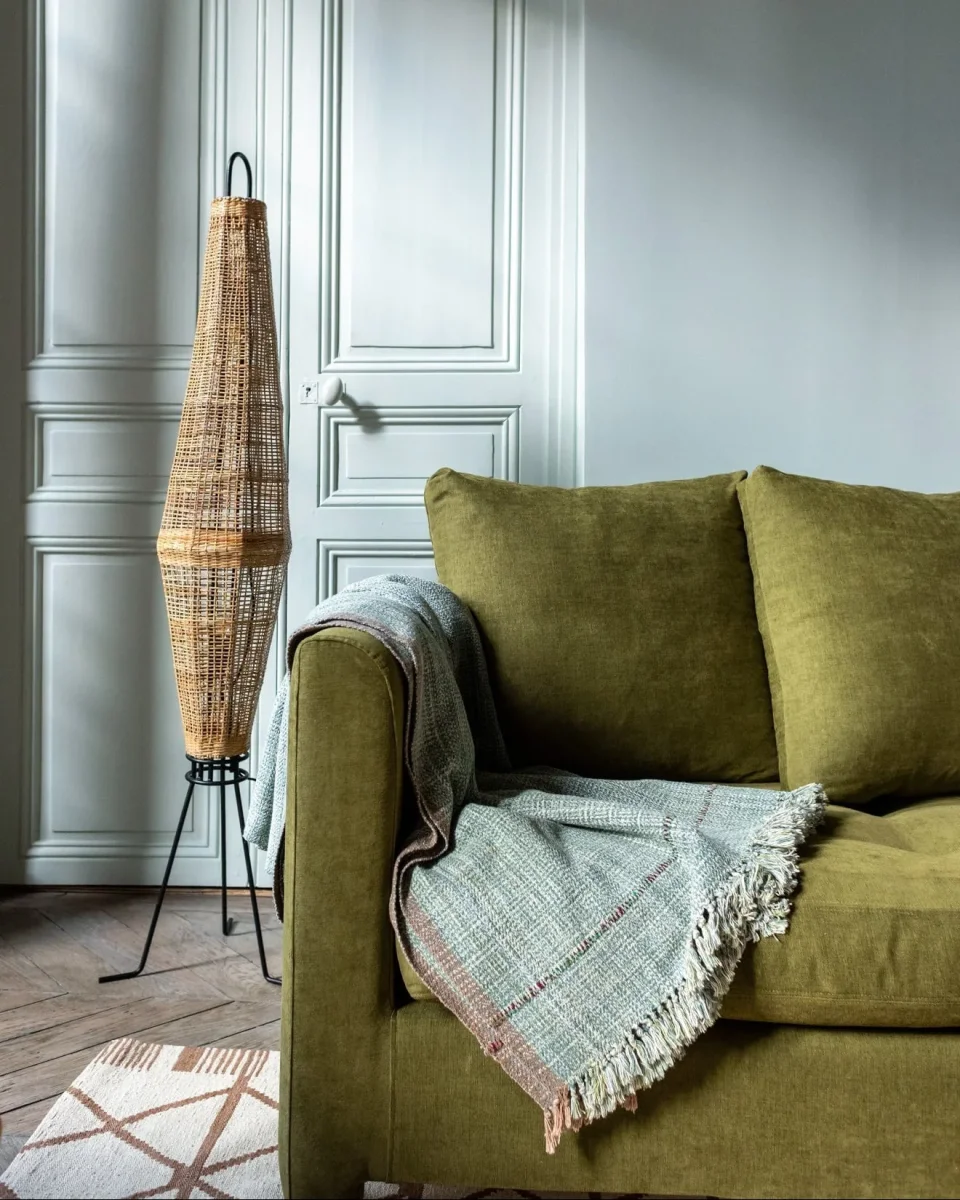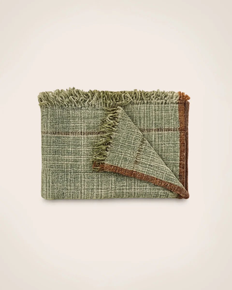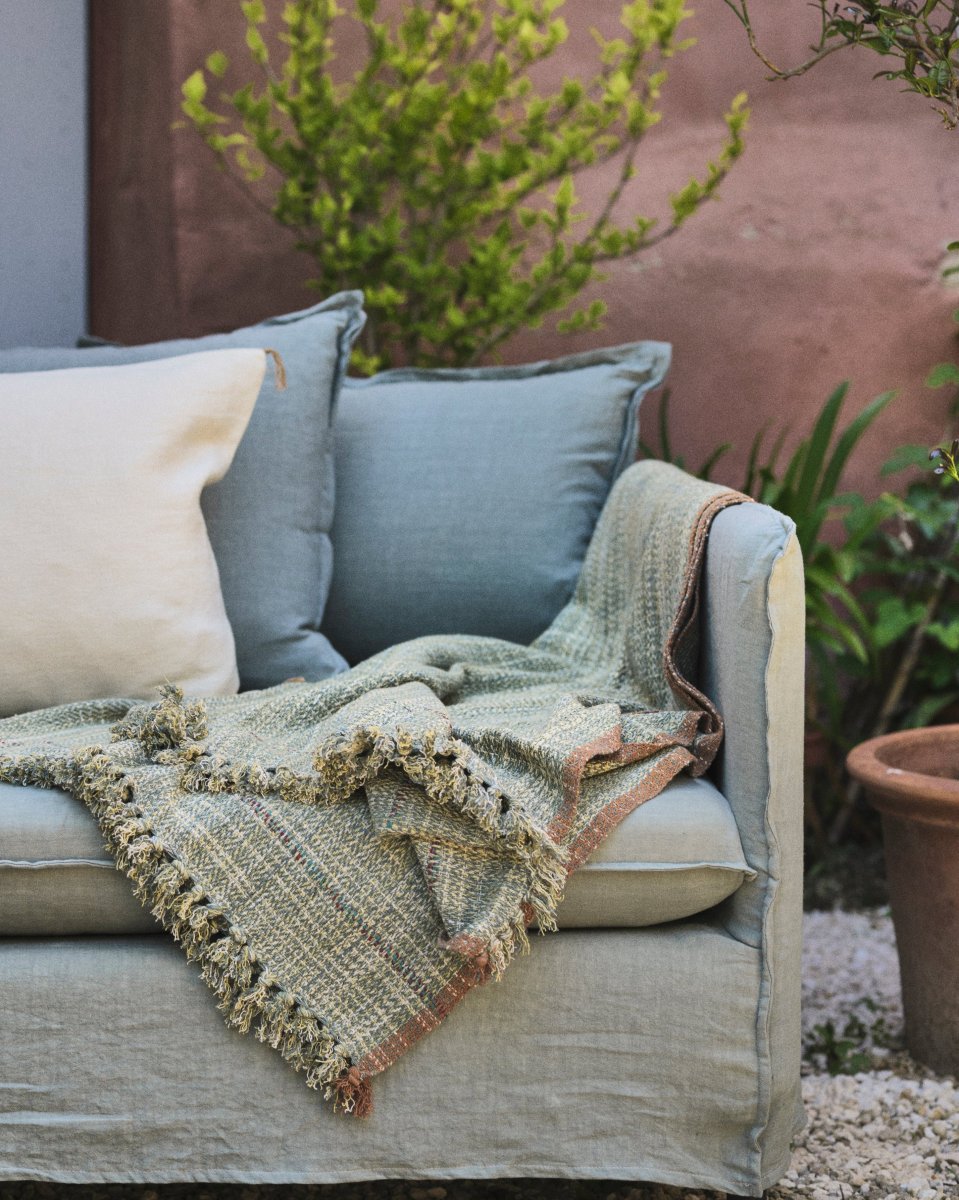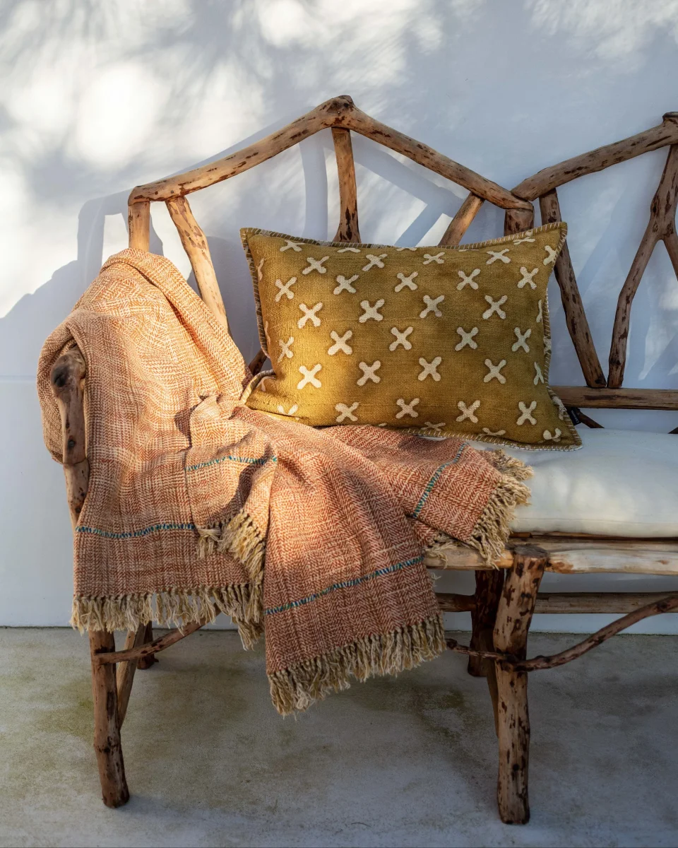 Enfin, la matière, faite de coton tissé à la main, s’avère étonnamment lourde mais agréablement souple. Le plaid Mandho est fabriqué en Inde.