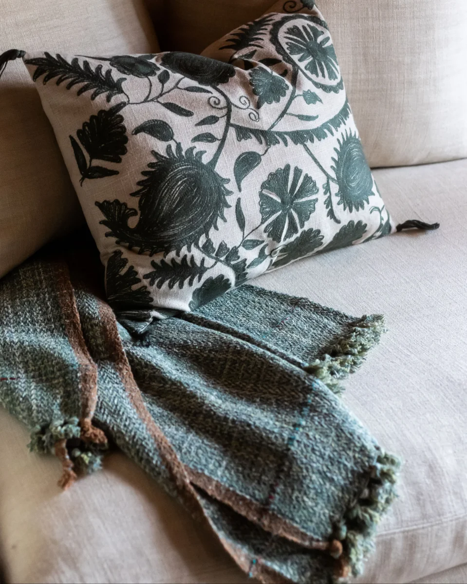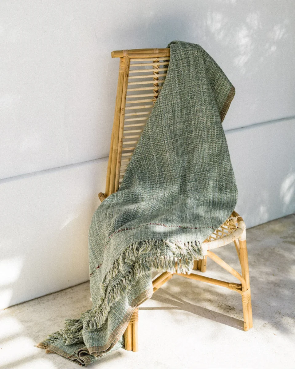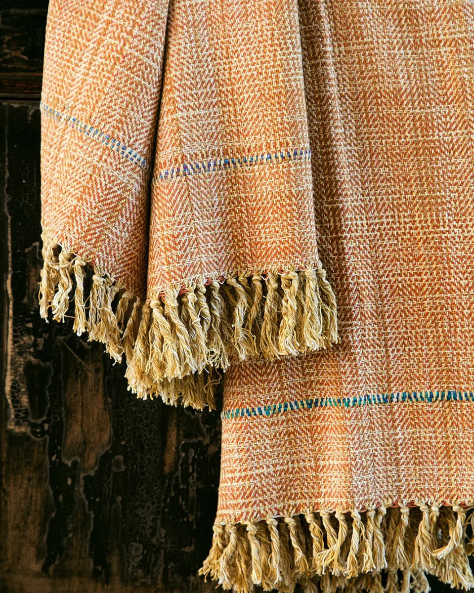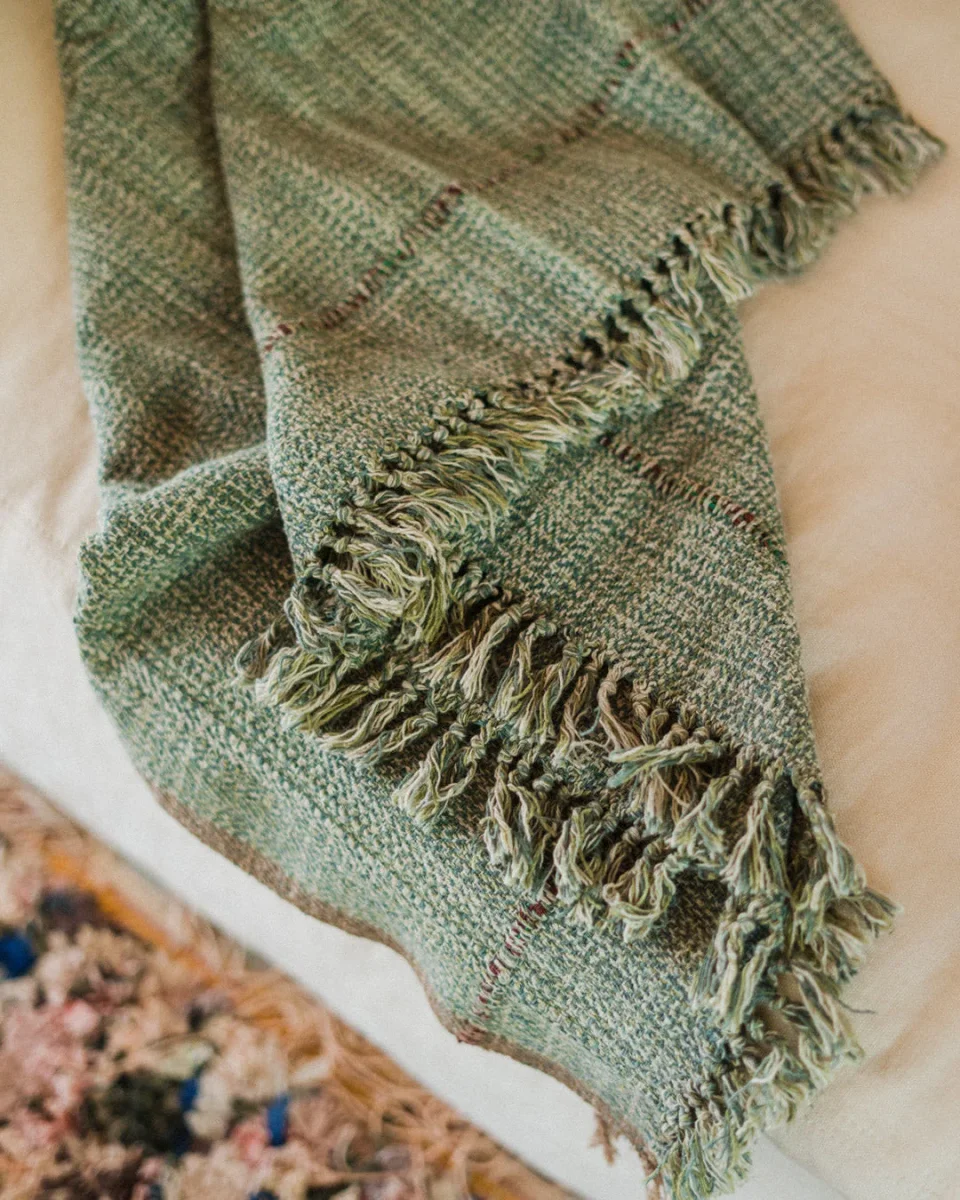 Enfin, la matière, faite de coton tissé à la main, s’avère étonnamment lourde mais agréablement souple. Le plaid Mandho est fabriqué en Inde.