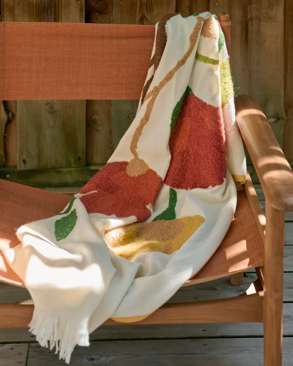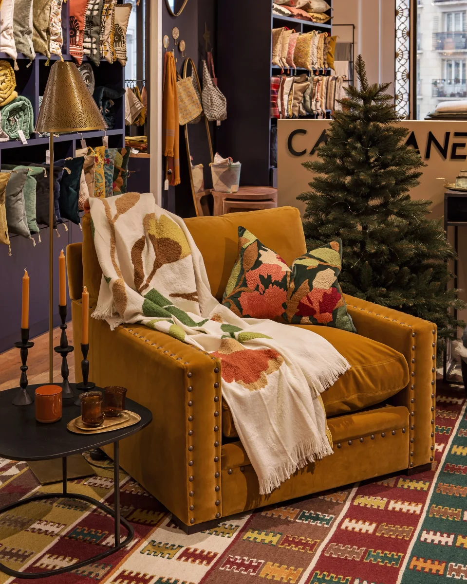 Ce plaid aux motifs extra larges et aux couleurs franches est un prétexte : celui de se recroqueviller et profiter de la lourdeur de la laine pure et de la douceur de ses broderies guidées main. Optez pour ce plaid bien chaud et réconfortant aux finitions haut de gamme