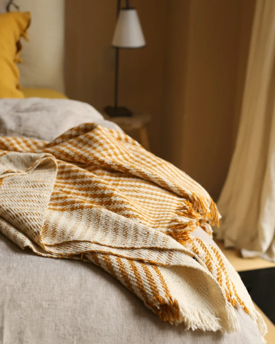 Le plaid Pied de poule est un pur khadi de coton : filé et tissé à la main. Cela apporte au tissage cette jolie irrégularité, qui le rend vivant et hypnotique. Il existe en plusieurs coloris : En noir et blanc cassé, il met en lumière la beauté des matières.En Laurier et Curcuma, il apporte […]