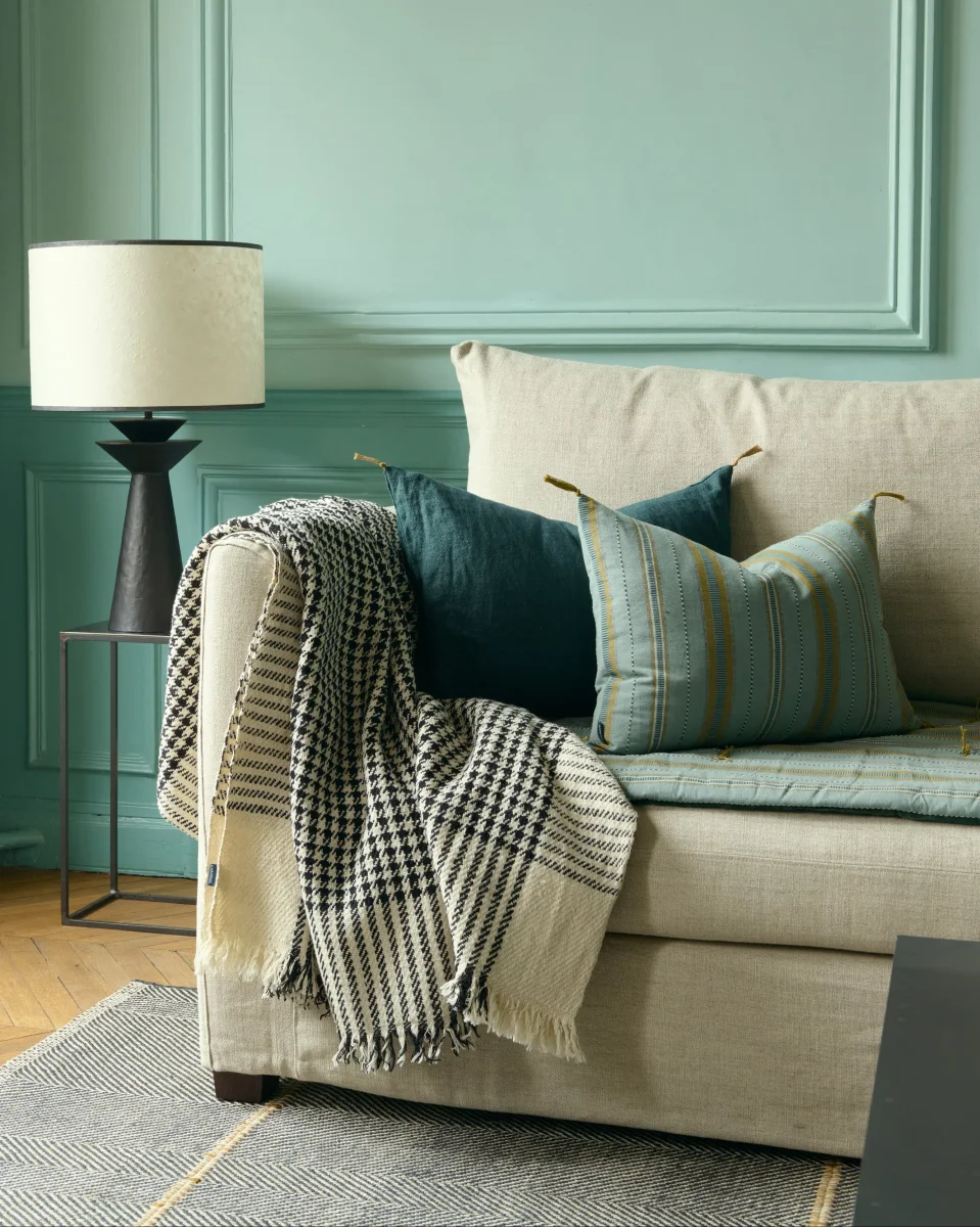 En iconique noir et blanc cassé comme en couleurs pep’s que l’on retrouve facilement dans tous les tissus de la gamme Caravane, ce plaid ose tous les accords : posé sur un fauteuil pour des lectures paresseuses, par-dessus un canapé pour réveiller ses couleurs, sur un lit pour le rendre plus magnétique, en association avec des unis comme d’autres imprimés.
