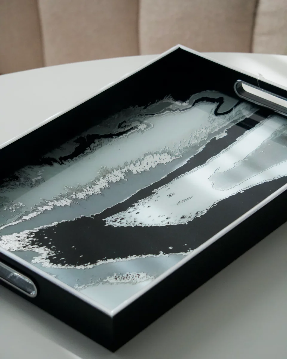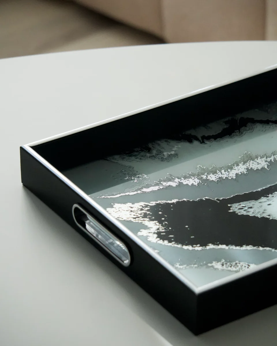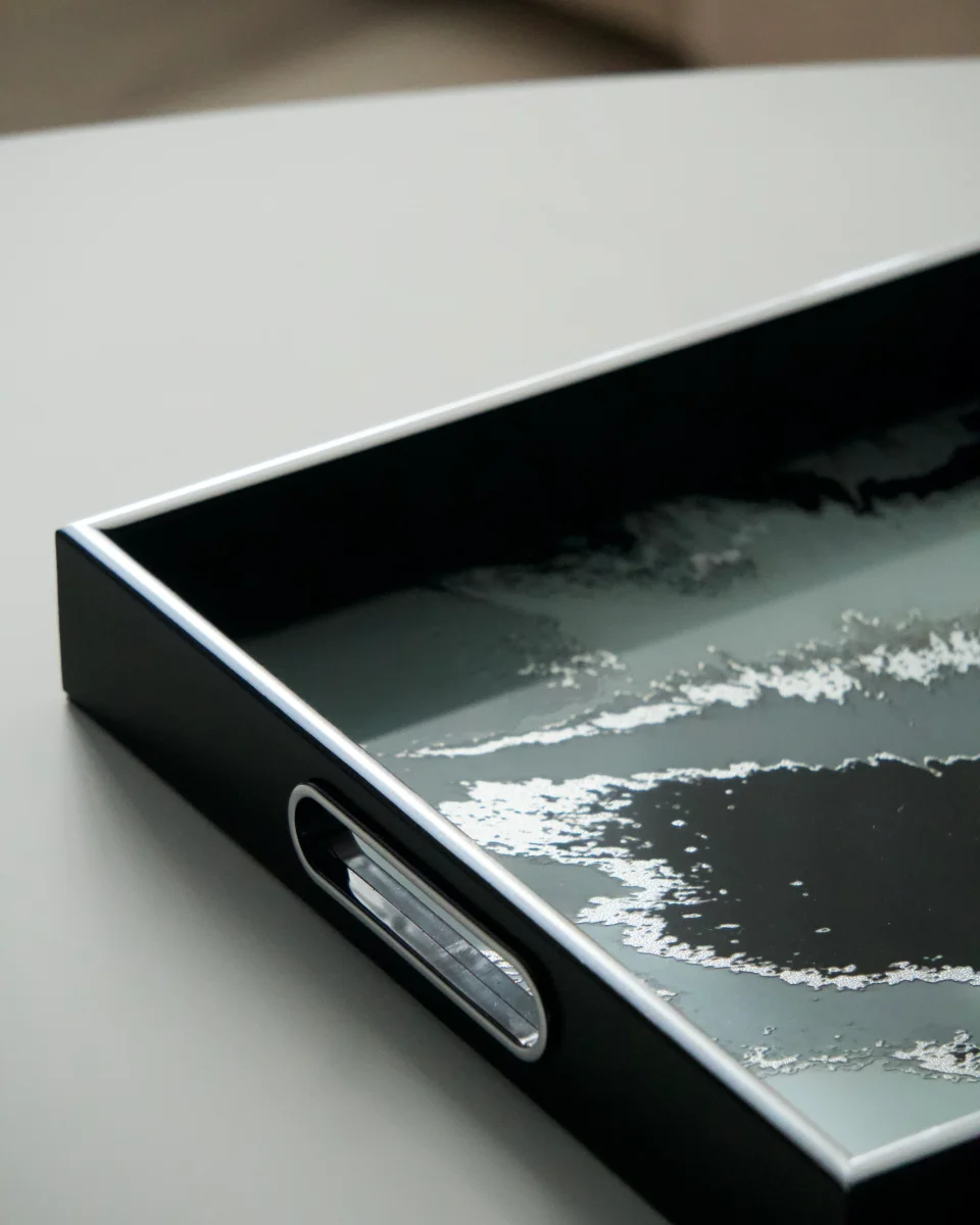 Plateau de Service | Élégance Moderne Noir et Argent | 45x30cm