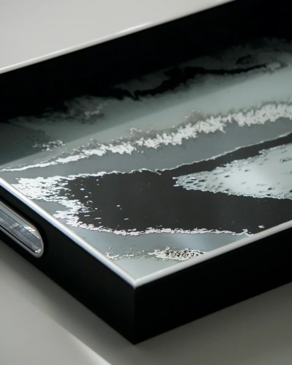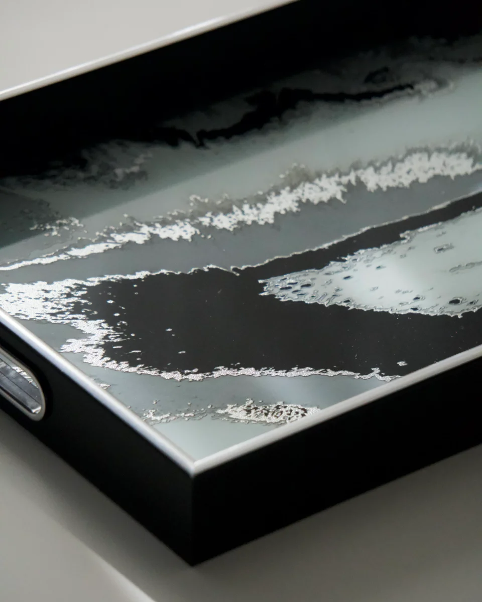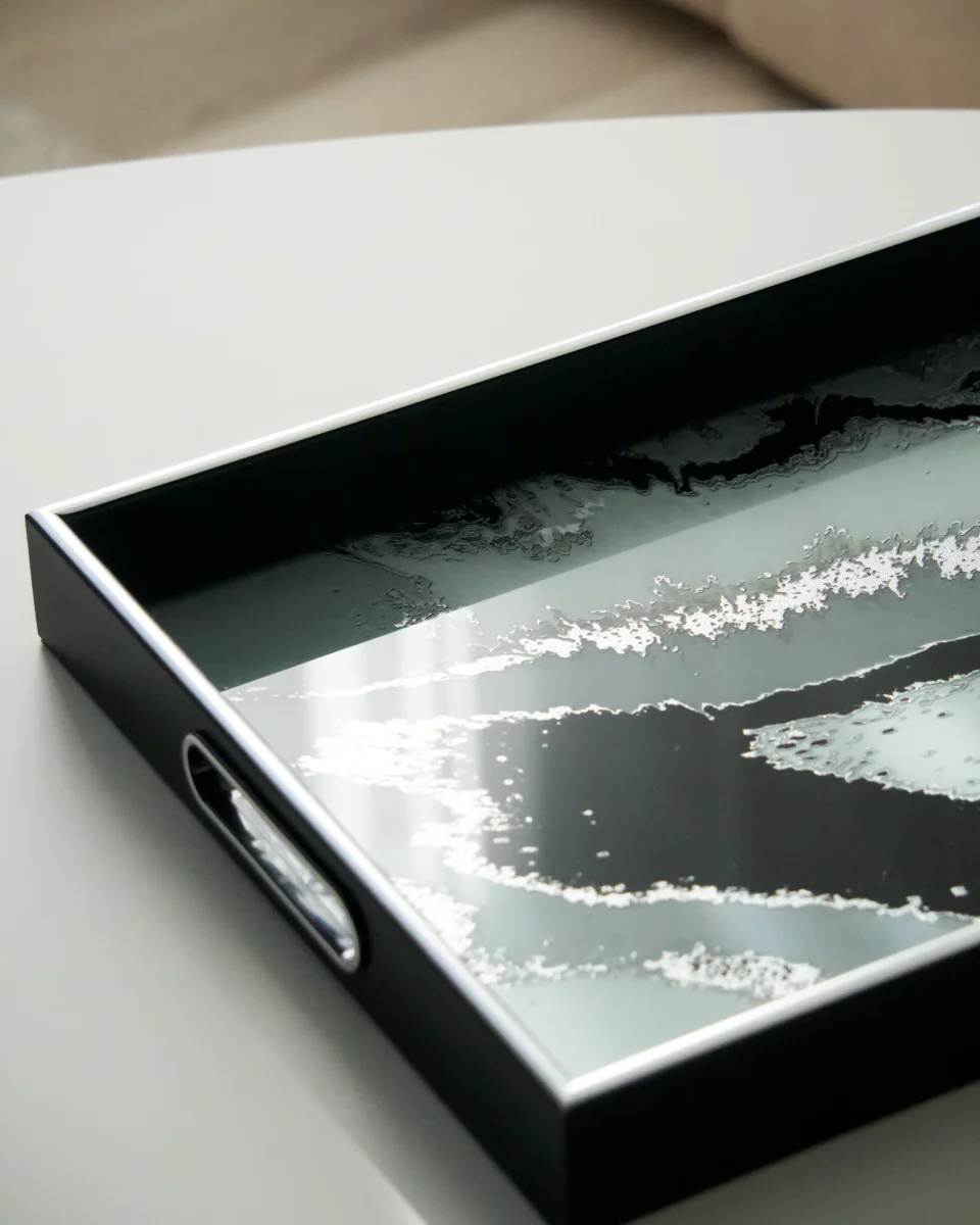 Plateau de Service | Élégance Moderne Noir et Argent | 45x30cm