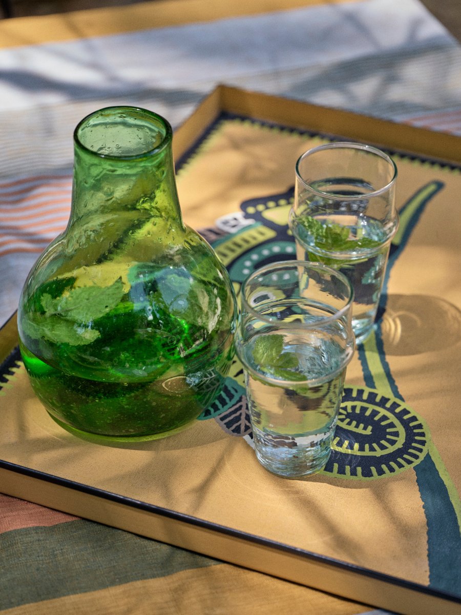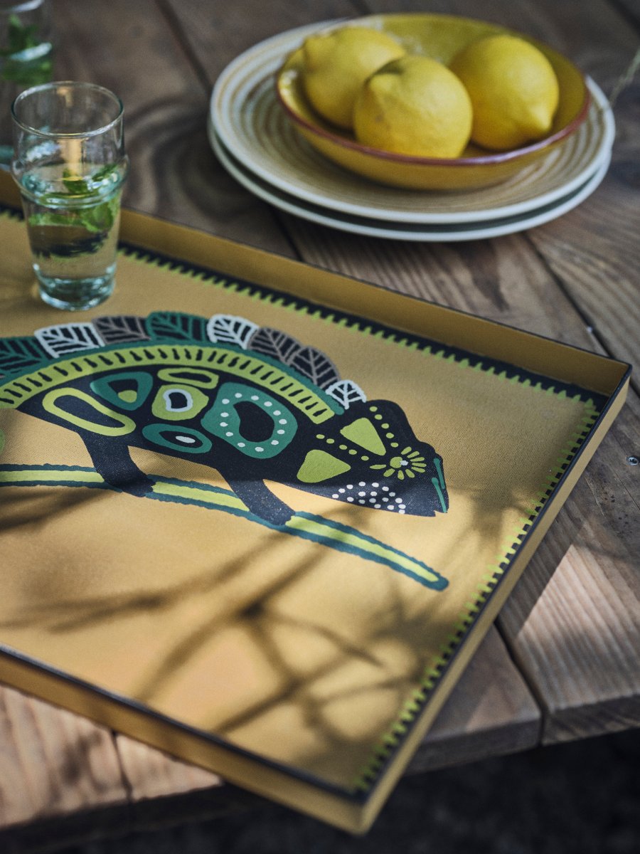 Le dessin s’inspire des motifs aborigènes aux tons chauds, réhaussés par une petite touche de vert anis. Chacun des détails est minutieusement peint à la main, par des artisans en Inde. Les dimensions du plateau sont idéales, ce qui en fait un allié parfait aussi bien pour les thés du soir au salon que pour les petits déjeuners au lit.