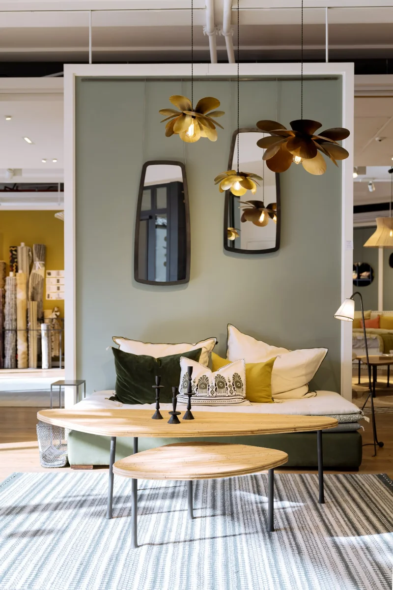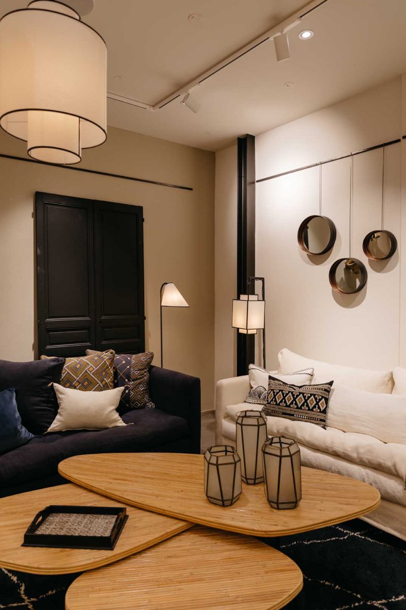 L’intemporelle table Yomi se décline : un plateau de bambou, décliné en 3 tailles et différentes hauteurs de pieds, en acier martelé.