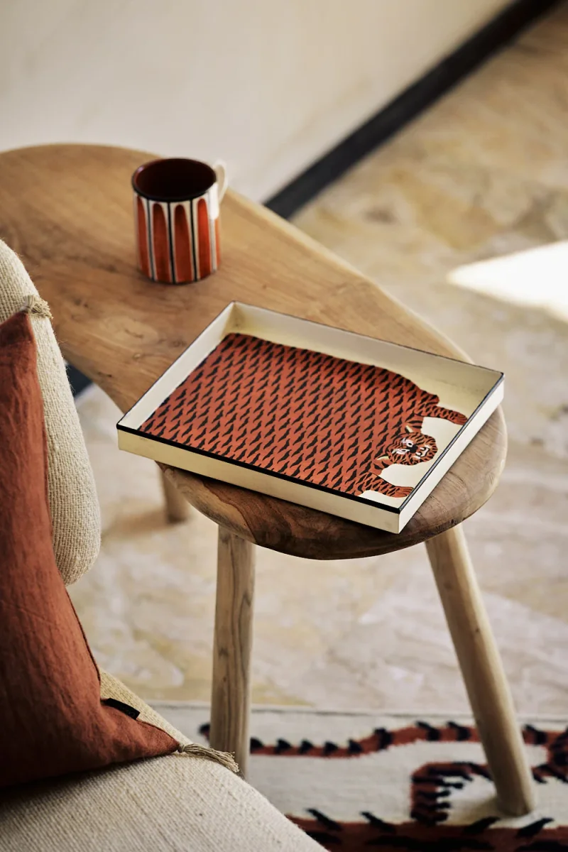 Le plateau Tigre est petit et charmant, c’est un format idéal pour servir thés du soir au salon comme petits déjeuners au lit. Vendu uniquement en ligne.