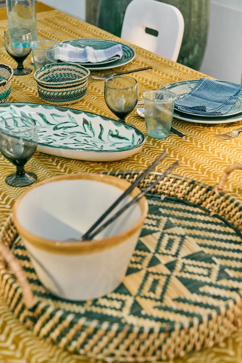 L’artisanat d’art, adapté au quotidien : voici Yata, un plateau tissé en bambou, dont les fibres teintes dévoilent un motif géométrique hypnotique. On aime la régularité de ses lignes, à peine perturbées par le caractère artisanal de l’objet fabriqué en Inde.