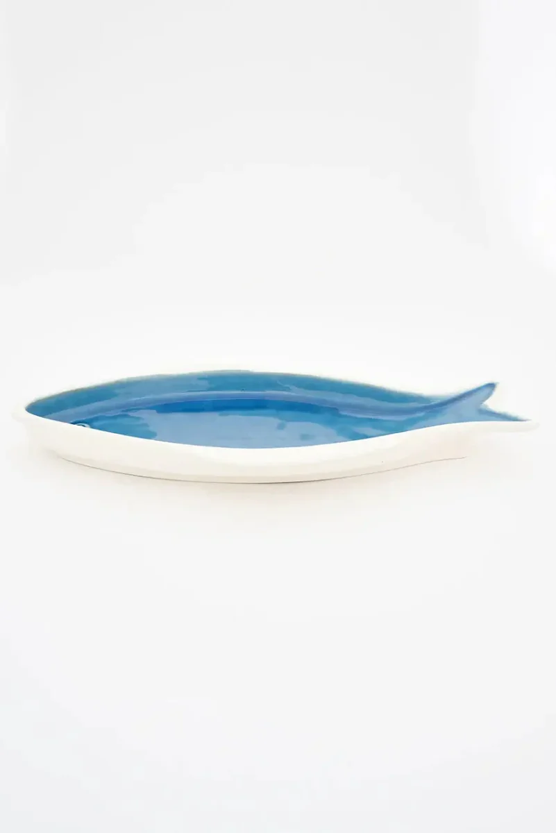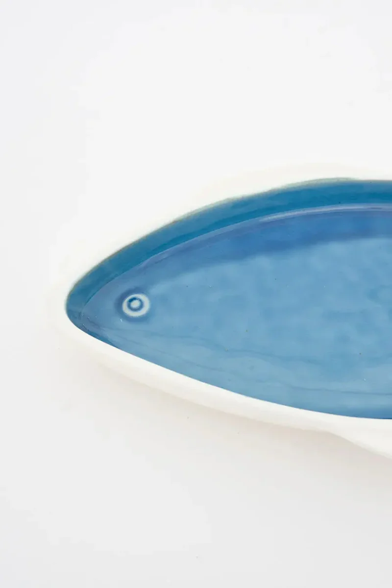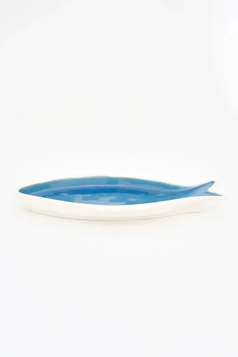 Un plato en porcelana con forma de pez en color azul es una pieza encantadora que aportará un toque distintivo y fresco a tu mesa. Perfecto para servir aperitivos, ensaladas o como un elemento decorativo, este plato combina funcionalidad y estilo con su diseño lúdico y elegante.