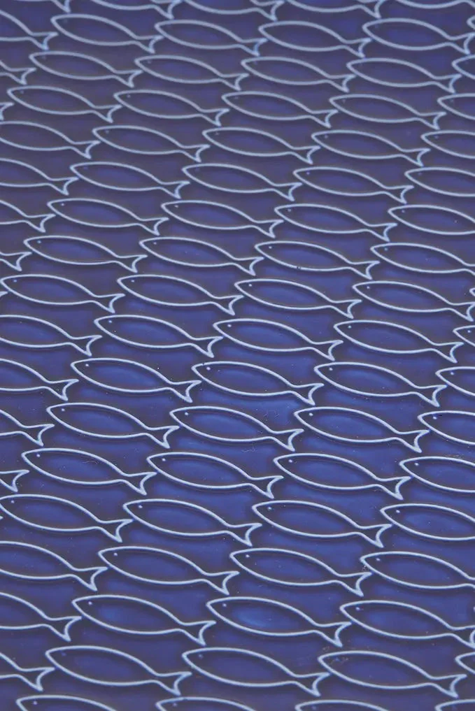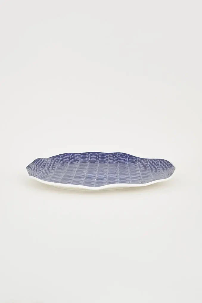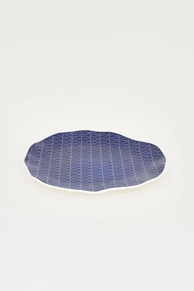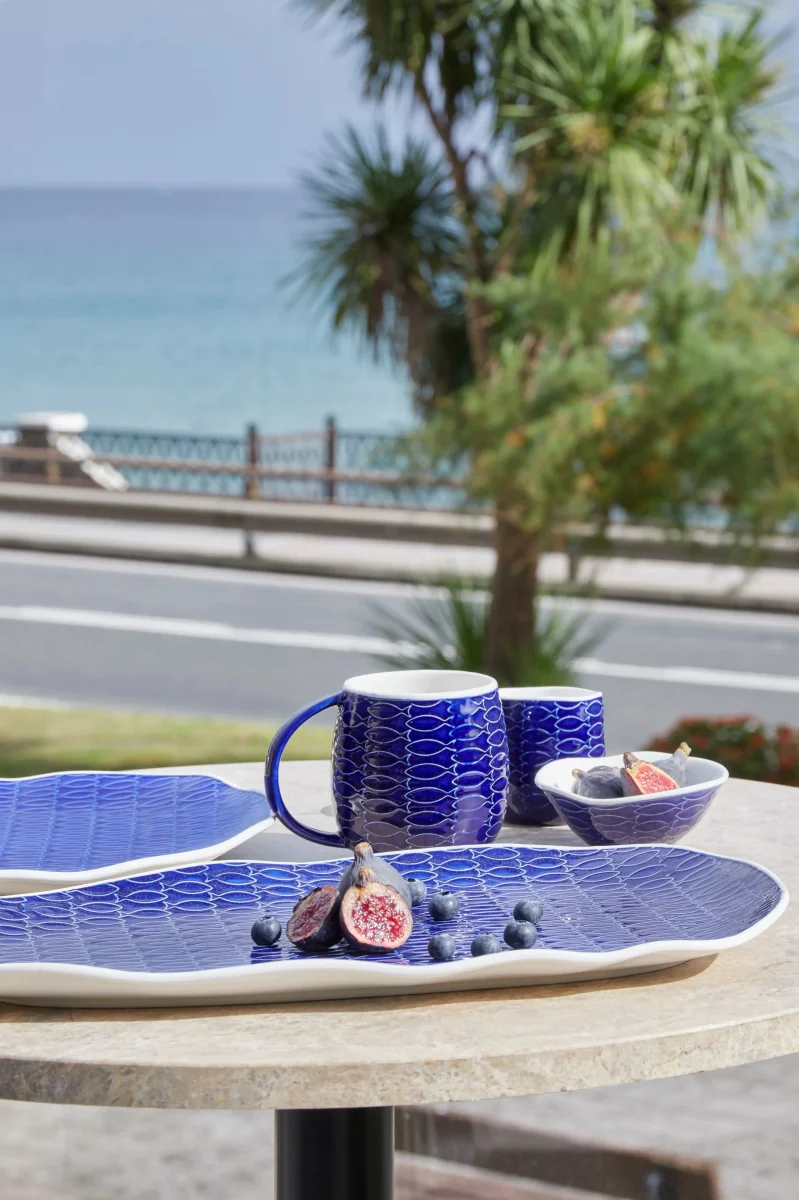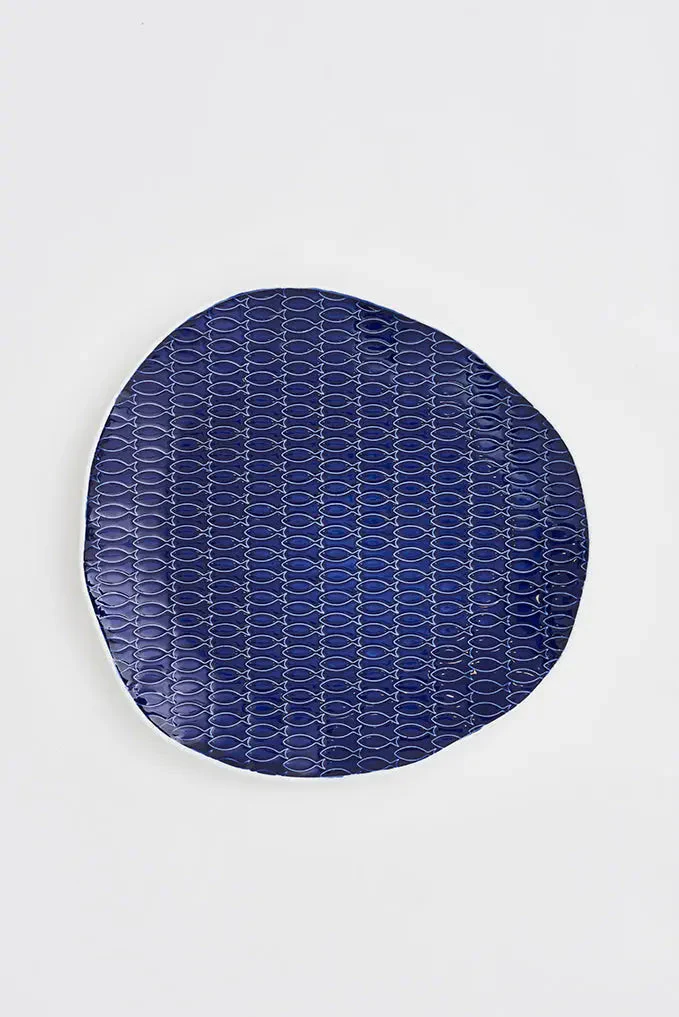 Plato de peces en relieve en cerámica azul: forma irregular para un toque original