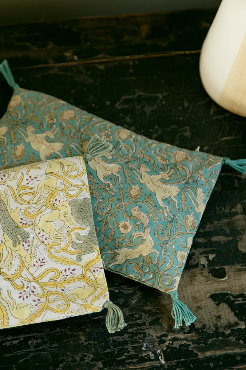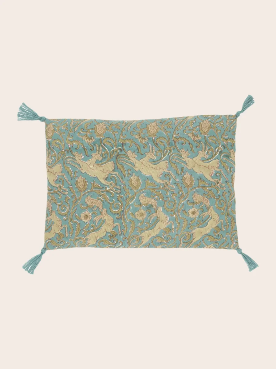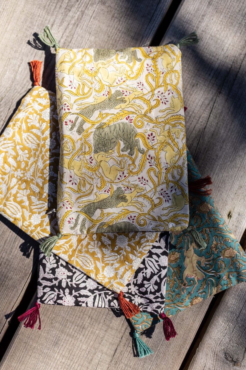 Letho est imprimé au bloc de façon artisanale, un imprimé qui pétillent grâce à des teintes pleines de nuances et de vivacité. Une tonalité principale, aux contours contrastés pour en souligner les détails.