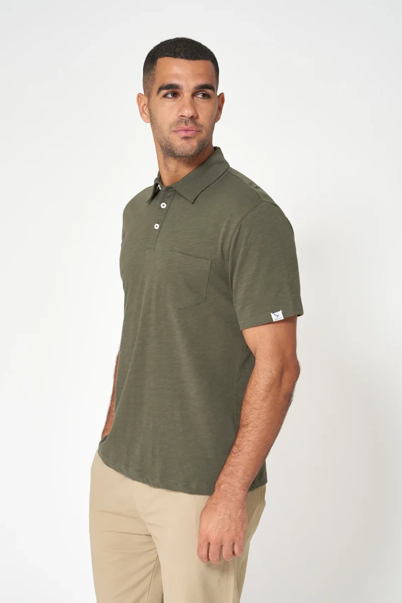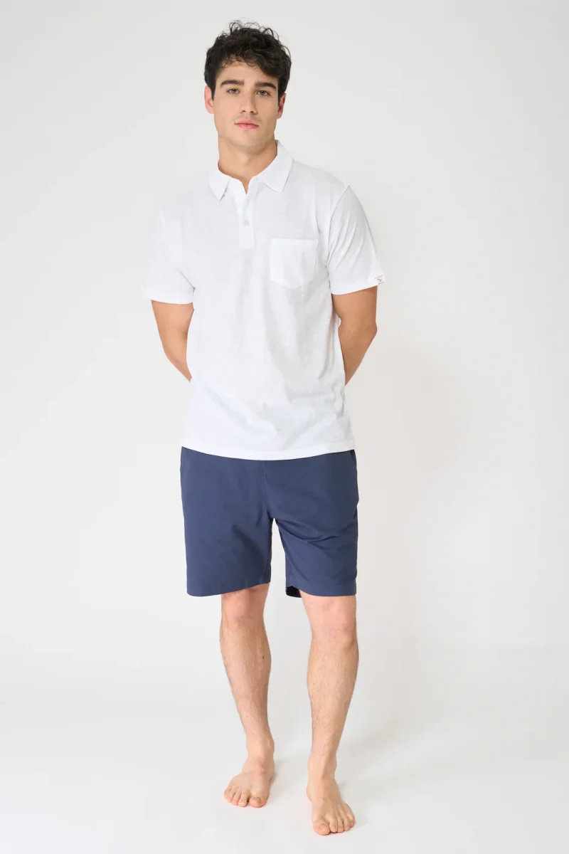 Polo de hombre de corte clásico confeccionado 100% en algodón flamé de alta calidad con certificación OEKO-TEX®, garantizando un tejido libre de sustancias nocivas. El tejido flamé es ligero, suave y cómodo, por lo que es adecuado para prendas de verano o entretiempo. Se caracteriza por es su textura, los hilos tienen una variación de grosor, lo que provoca un efecto visual que puede parecer moteado o desigual, dando un toque de relieve a la tela.