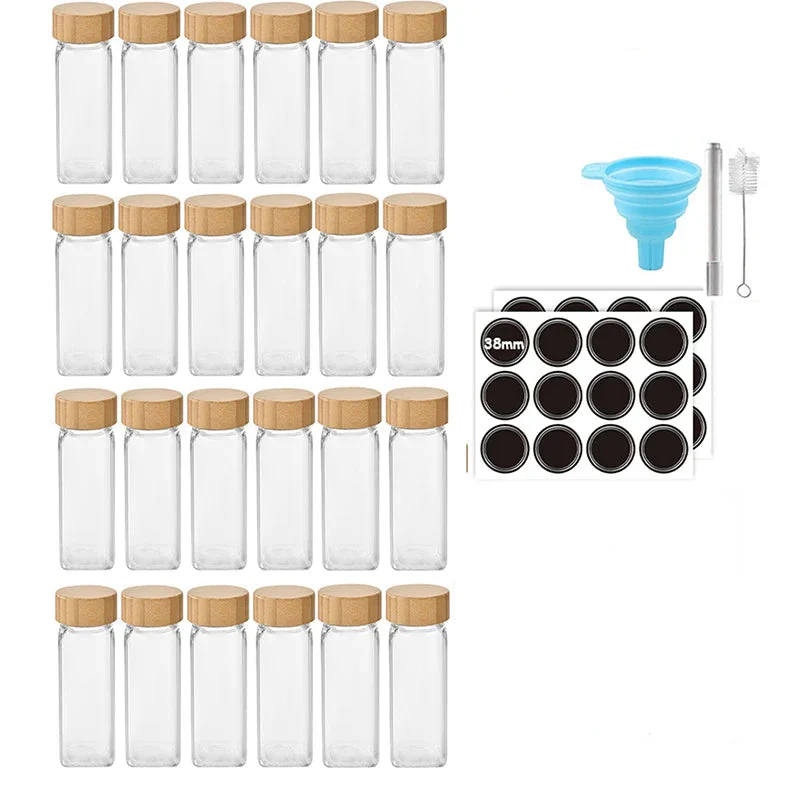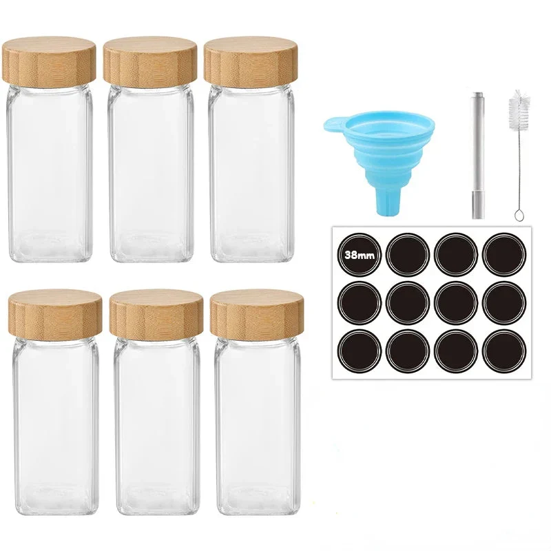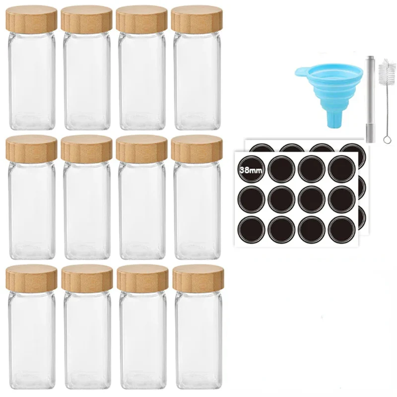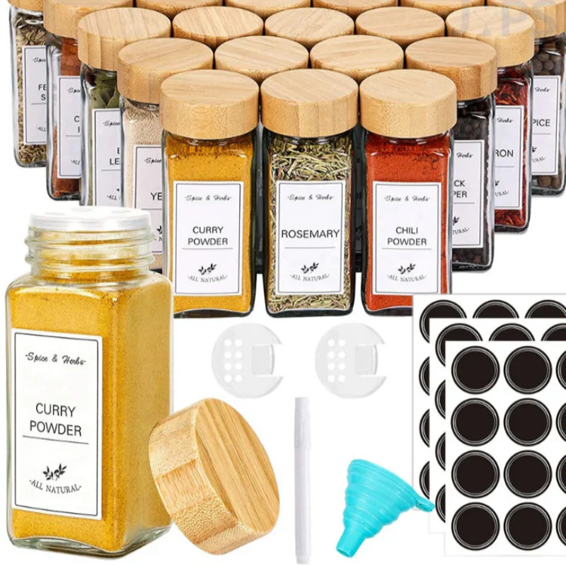 Pot à épices – Conservation parfaite et dosage précis pour vos condiments Verre épais haute qualité Couvercle bambou doseur 2-en-1 Sets de 6, 12 ou 24 pots