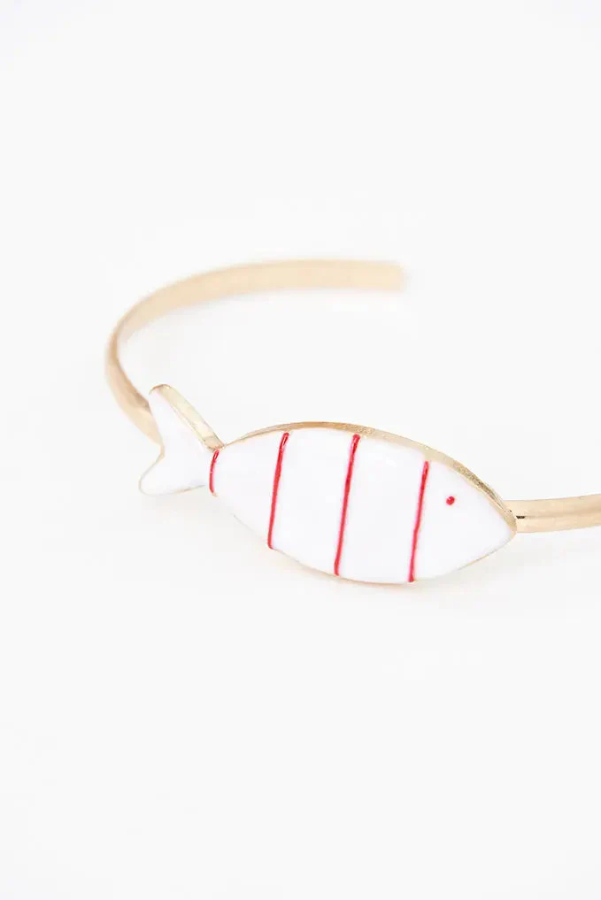 Pulsera con forma de pez a rayas rojas