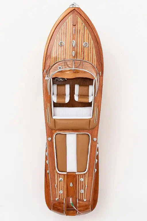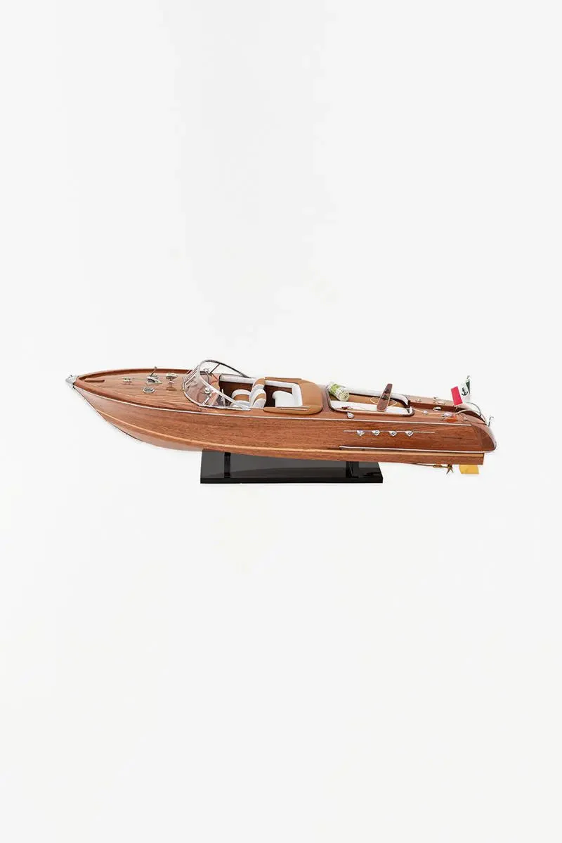 Réplica lancha de madera con bandera de Italia. Materiales de alta calidad y un objeto marinero único para decorar tu hogar o negocio.