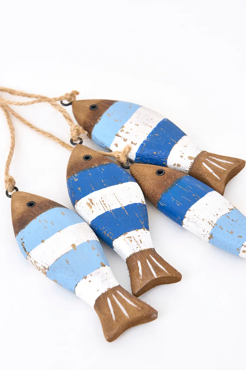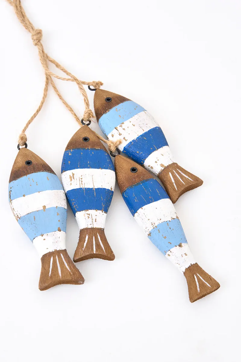 Pintados a rayas en tonos blancos y azules con acabado envejecido.