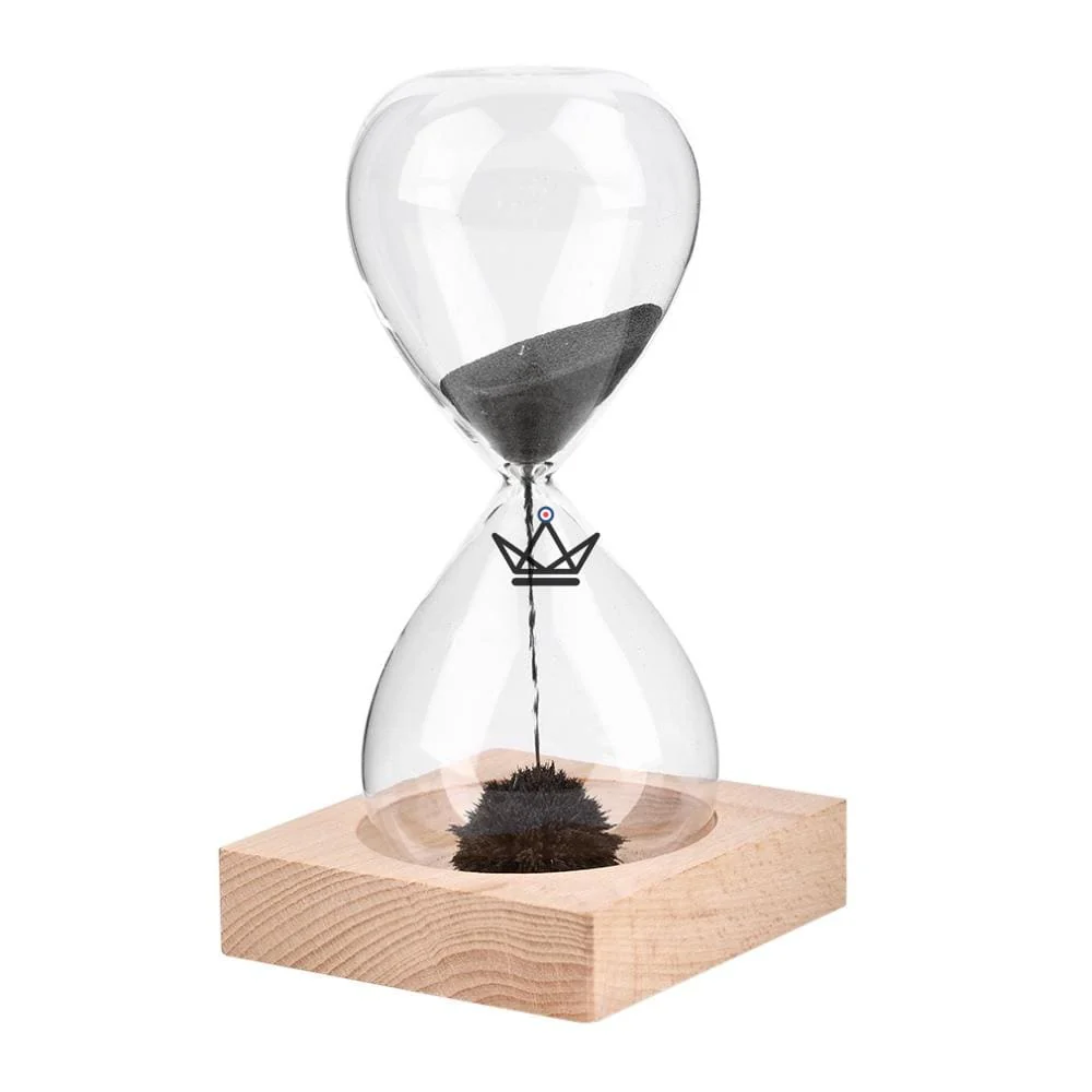 Un sablier magnétique qui crée des sculptures éphémères devant vos yeux, le socle aimanté jouant avec les petits grains de sable en fer.