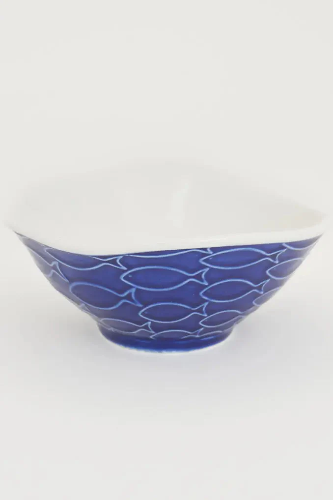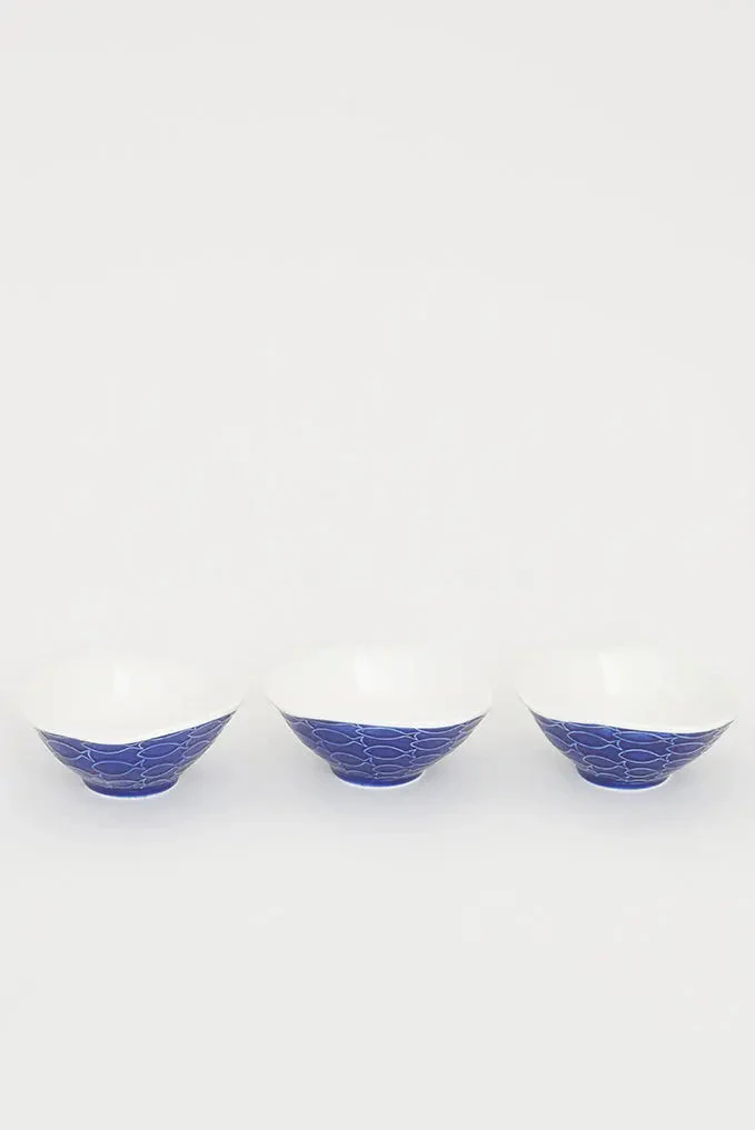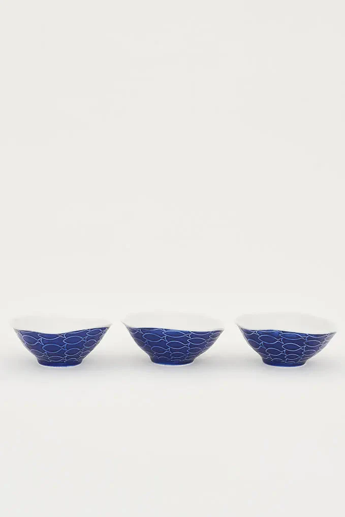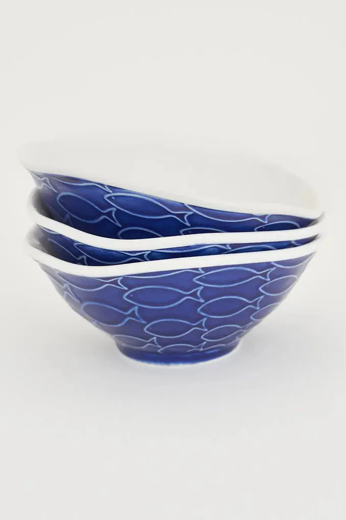 Set de 3 boles pequeños de cerámica con peces en relieve: encanto marinero