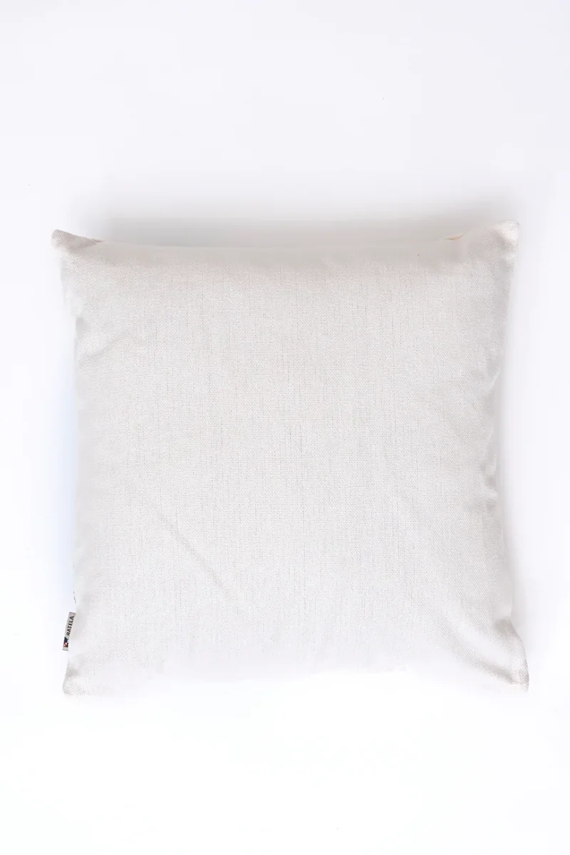 Cada cojín muestra una mitad del motivo, formando el diseño completo al colocarlos juntos.