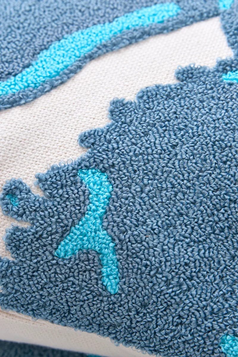 Set de dos cojines decorados con un cangrejo bordado dividido entre ambas piezas.