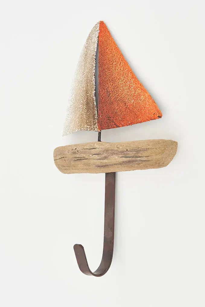 Set de 3 percheros veleros de Madera y Metal: Decoración Náutica
