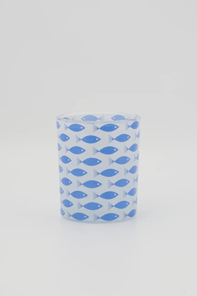 Bonito y alegre set de 3 portavelas con peces en blanco, rojo y azul. Un toque de luz calida en tu hogas.
