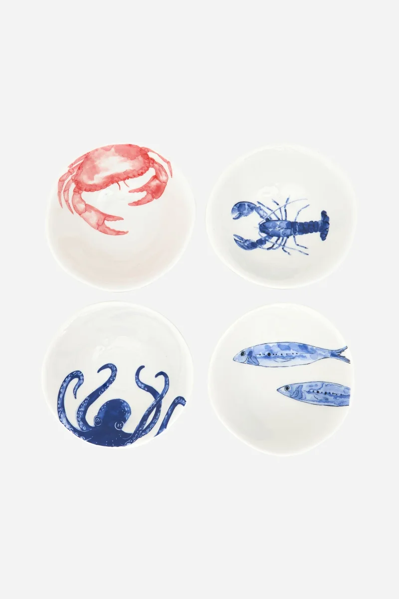 Set de cuatro boles decorados con diferentes animales marinos.
