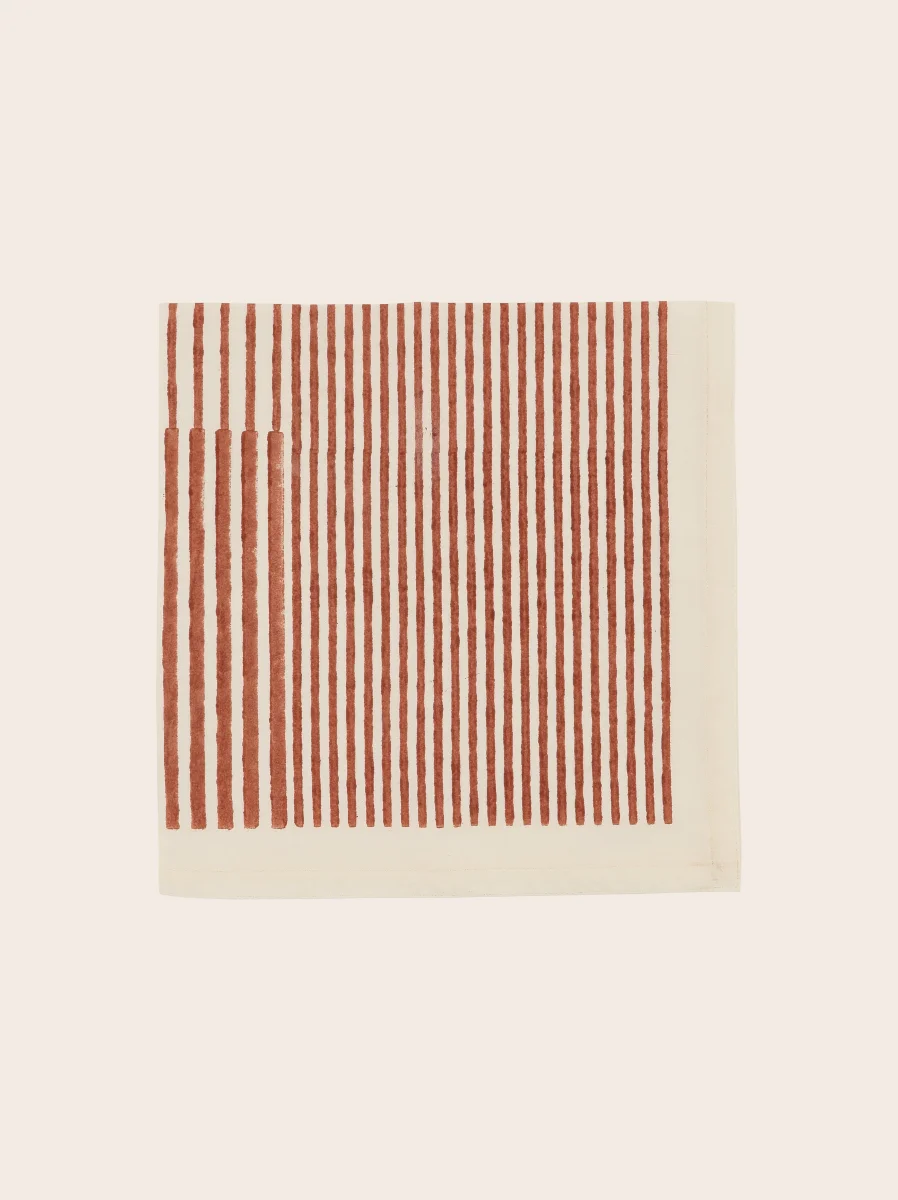 Étonnantes rayures que celles de Aryo, qui cohabitent dans une danse vibrante de jeux de rayures d’épaisseurs différentes. Cette toile de coton fascinante est bordée d’une délicate lisière imprimée qui reprend les teintes du motif.