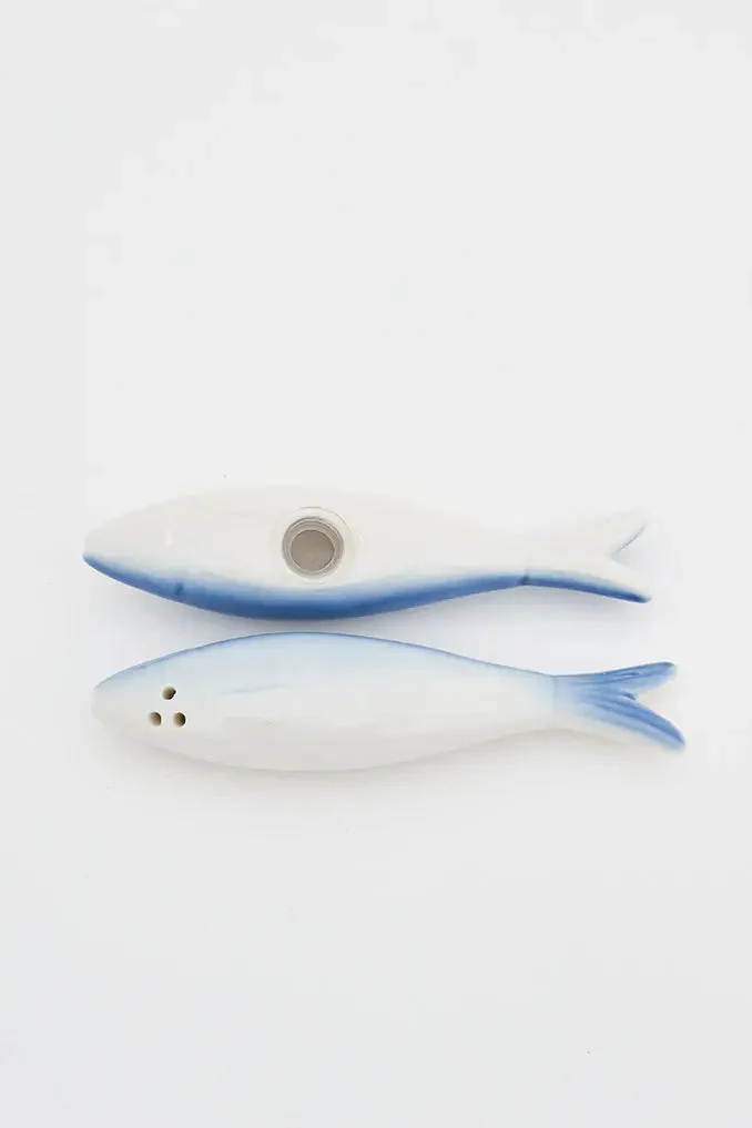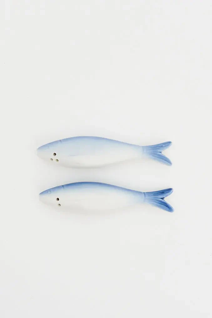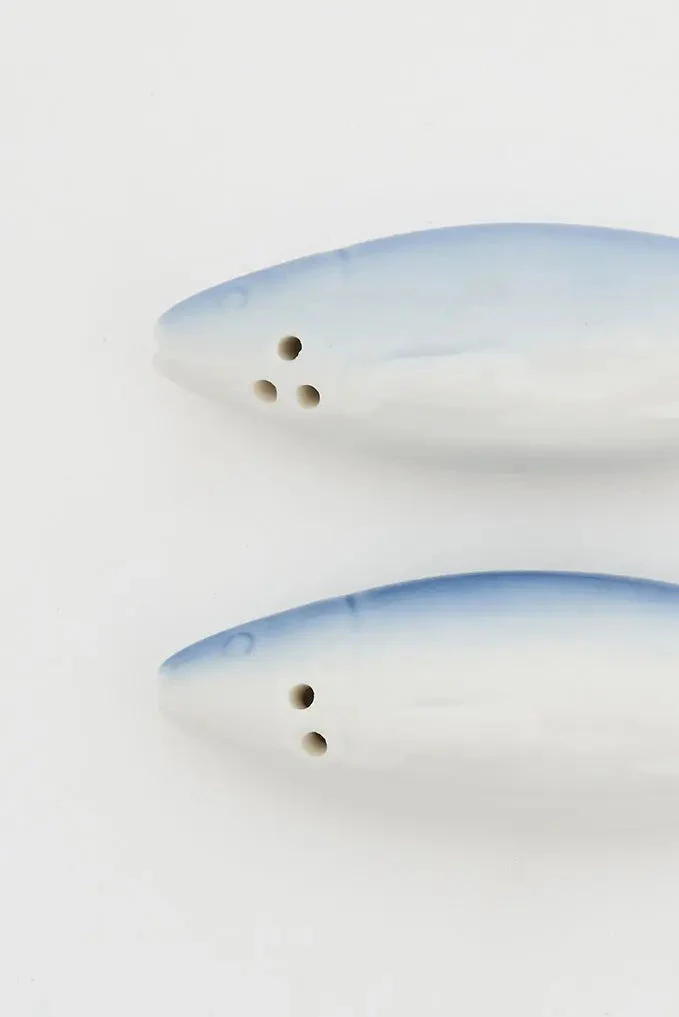 Set de salero y pimentero peces de cerámica bicolor: estilo en tu mesa