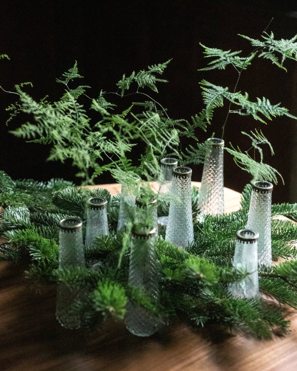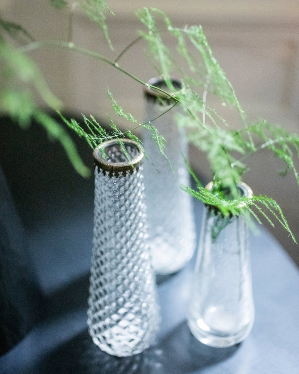 Les soliflores Hera séduisent par leur charme intemporel et leur esprit délicatement vintage, comme des pièces chinées. Déclinés en deux formats, ils jouent sur le contraste des matières : le modèle 13 cm est en verre lisse, tandis que le modèle 17 cm présente un verre embossé, texturé et lumineux.