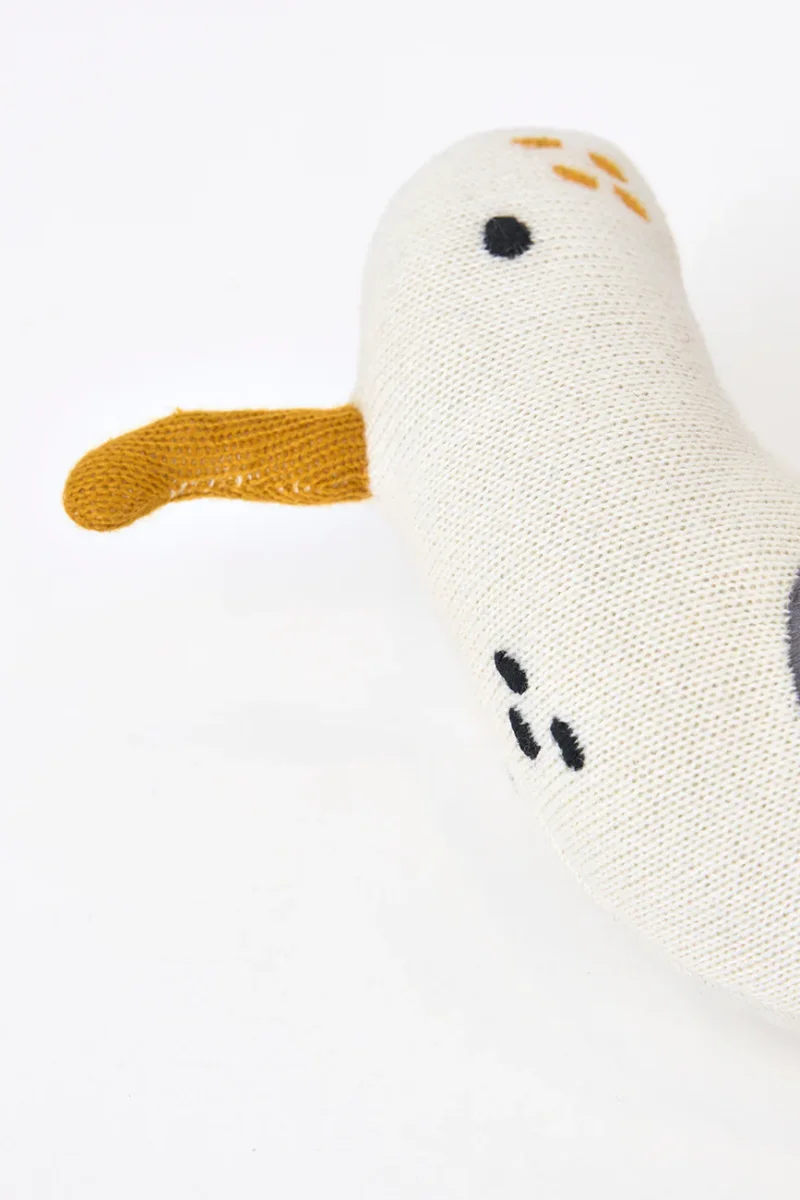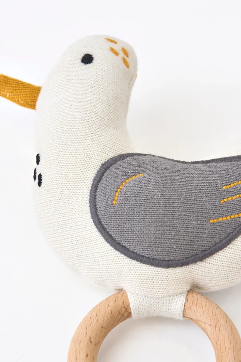 Sonajero con una gaviota de peluche incorporada.