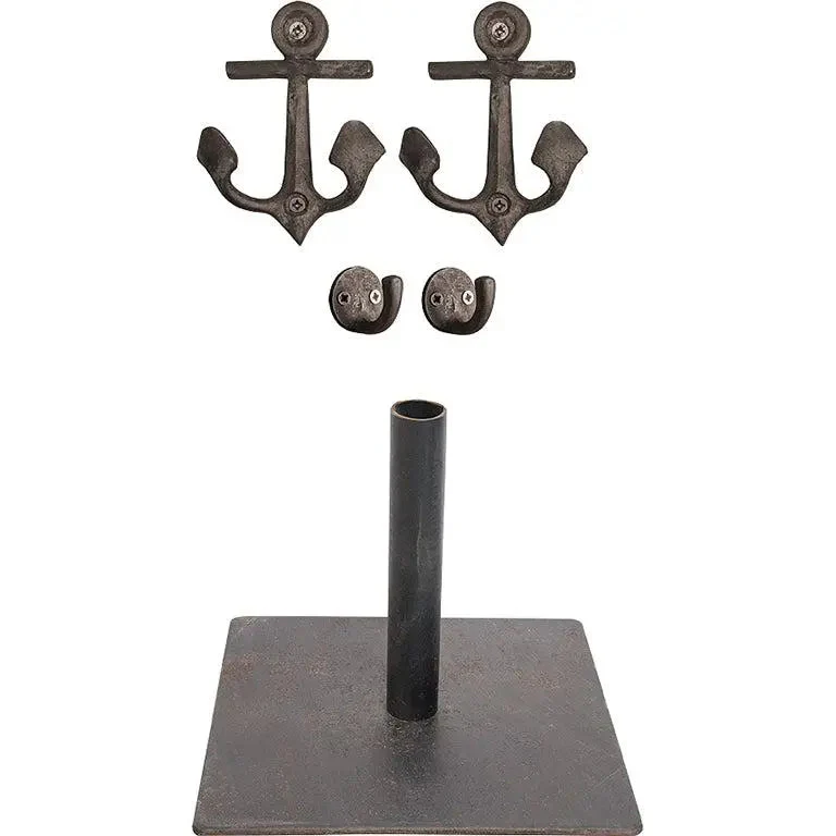 Soporte de metal para colocar el remo en sentido vertical. Incluye cuatro colgadores con los que el remo se convierte en perchero.