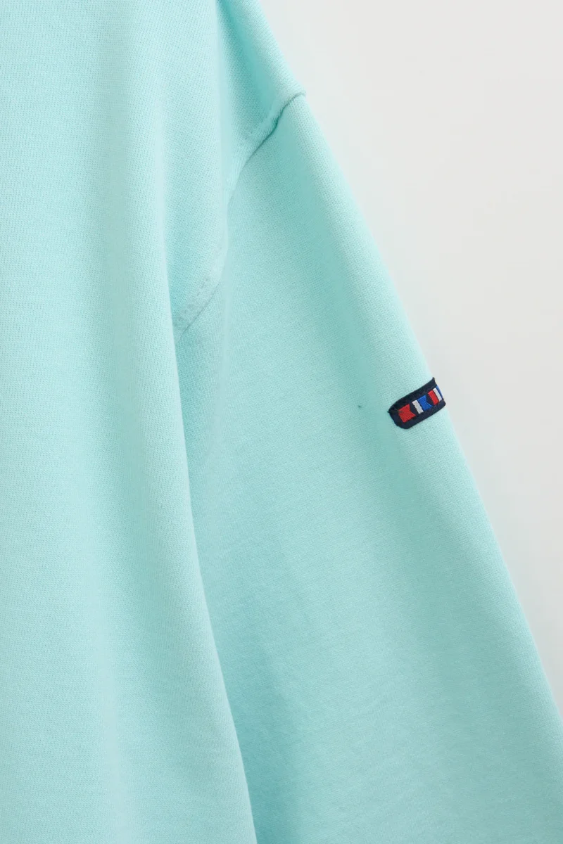 Esta sudadera está confeccionada 100% en algodón de rizo o Terry, un tejido suave y transpirable que ofrece el equilibrio perfecto entre confort y ligereza. Su estructura de bucles interiores permite que el aire circule mejor, ayuda a absorber la humedad y la convierte en una prenda especialmente agradable para el día a día.