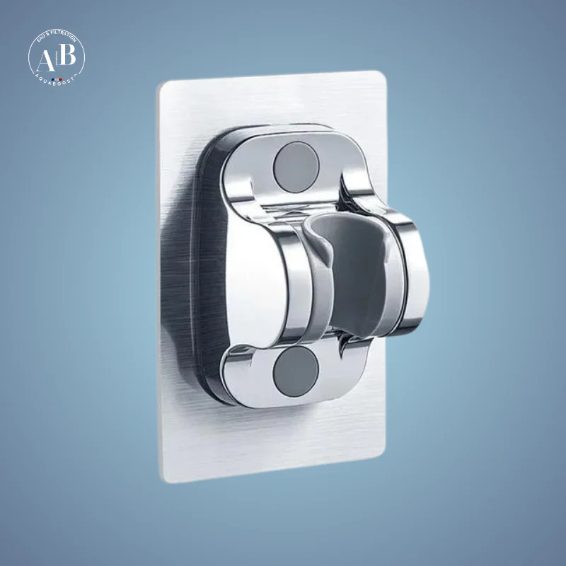 Support de douche en aluminium, noir ou acier brossé, sans vis, se colle directement sur support sec.