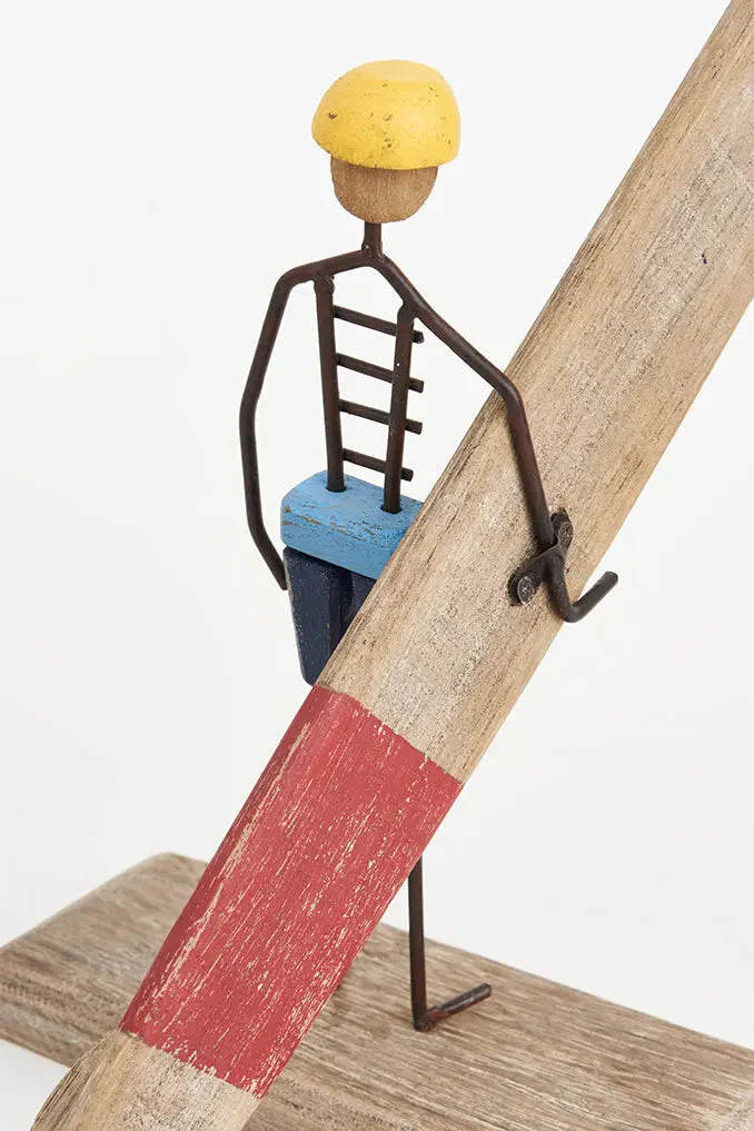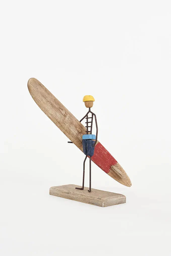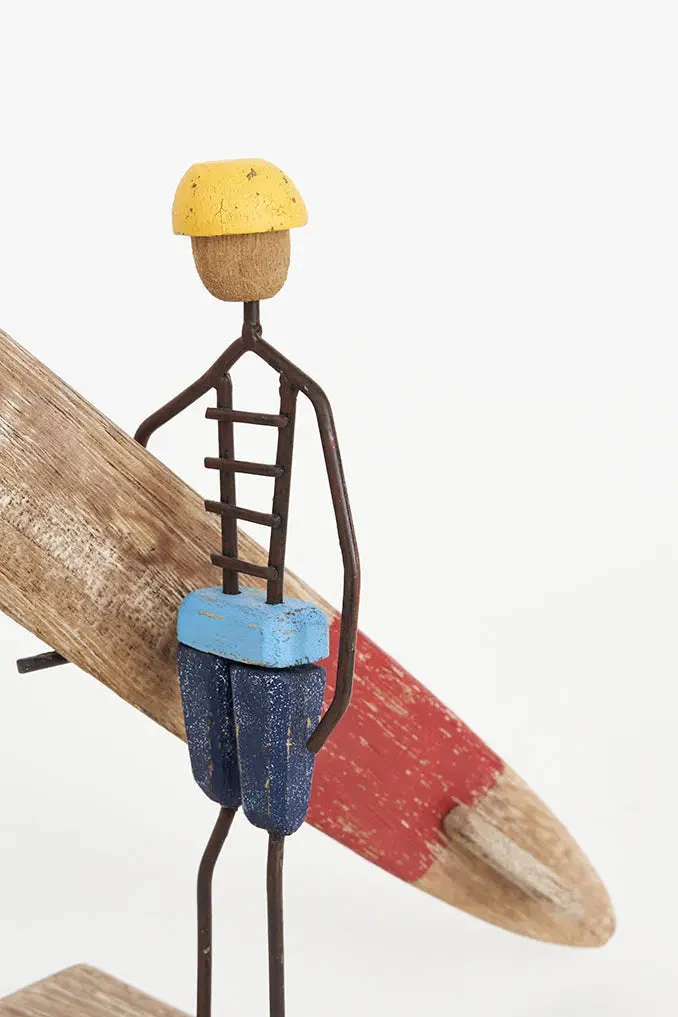 Surfero de madera y metal con base: Estilo náutico y surfero