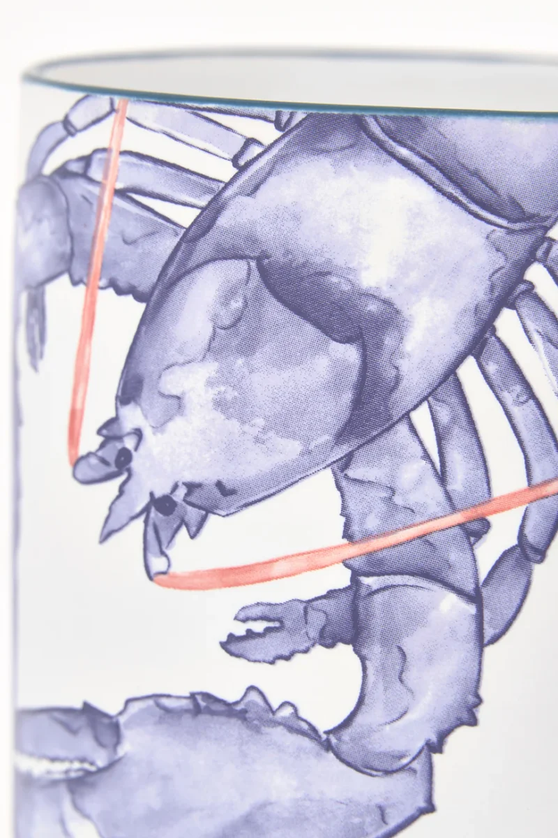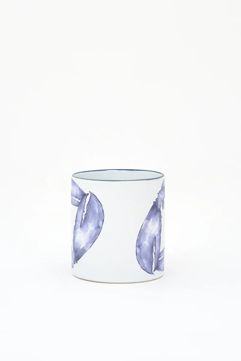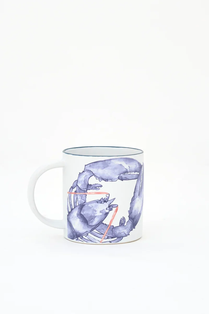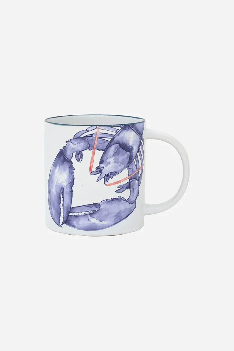 Taza elaborada en gres y decorada con una langosta pintada. Combina con el plato grande del mismo diseño. Una pieza funcional con carácter marinero para el día a día.