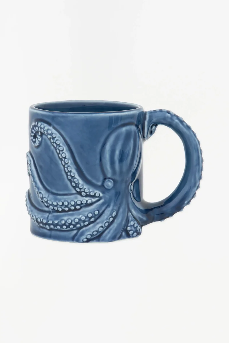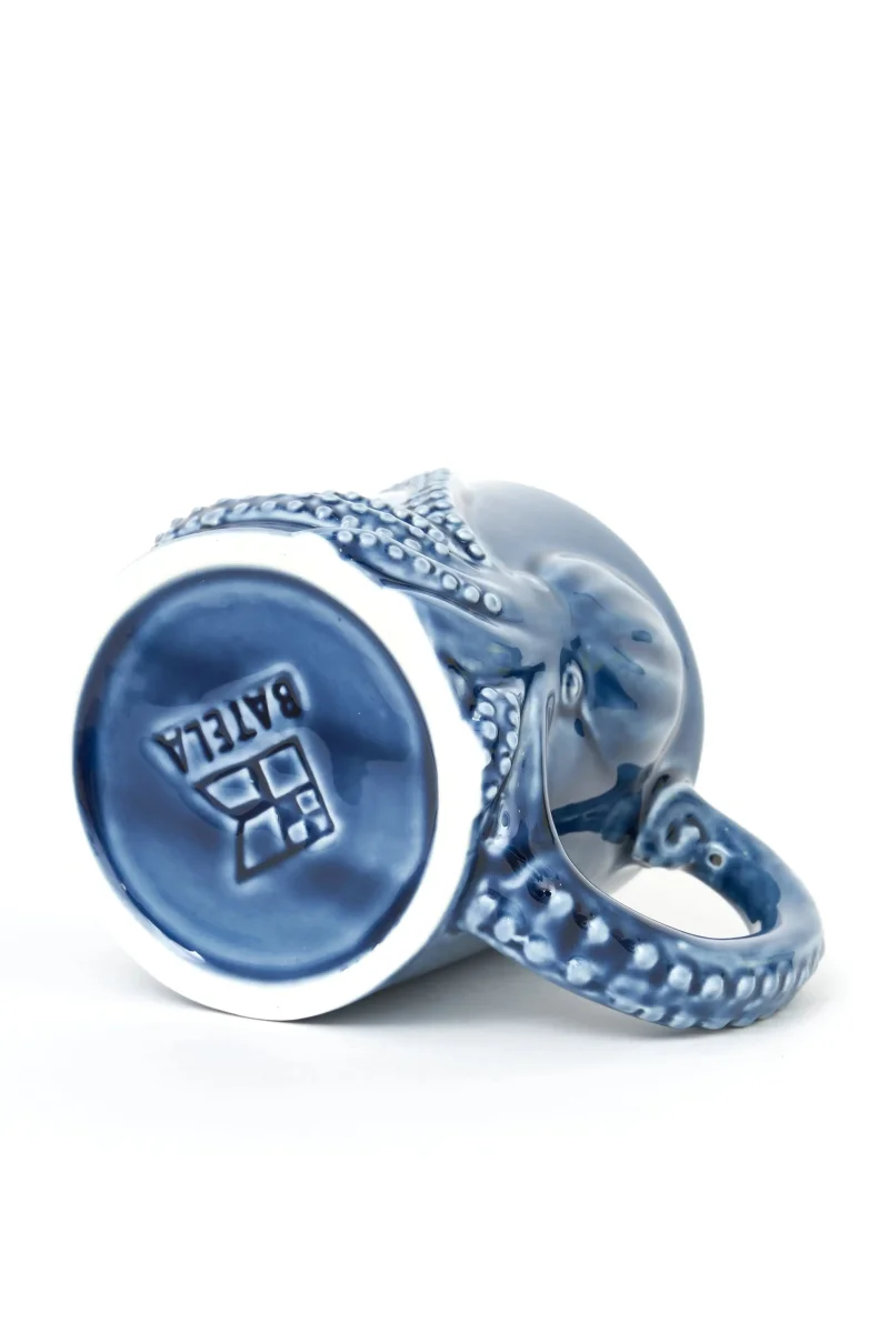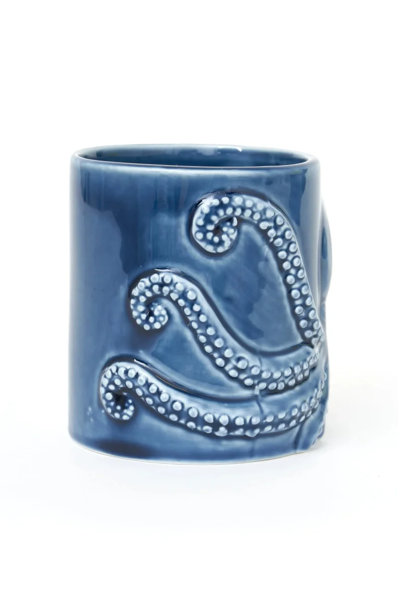 Taza pulpo azul en relieve y un asa que simula un tentáculo.