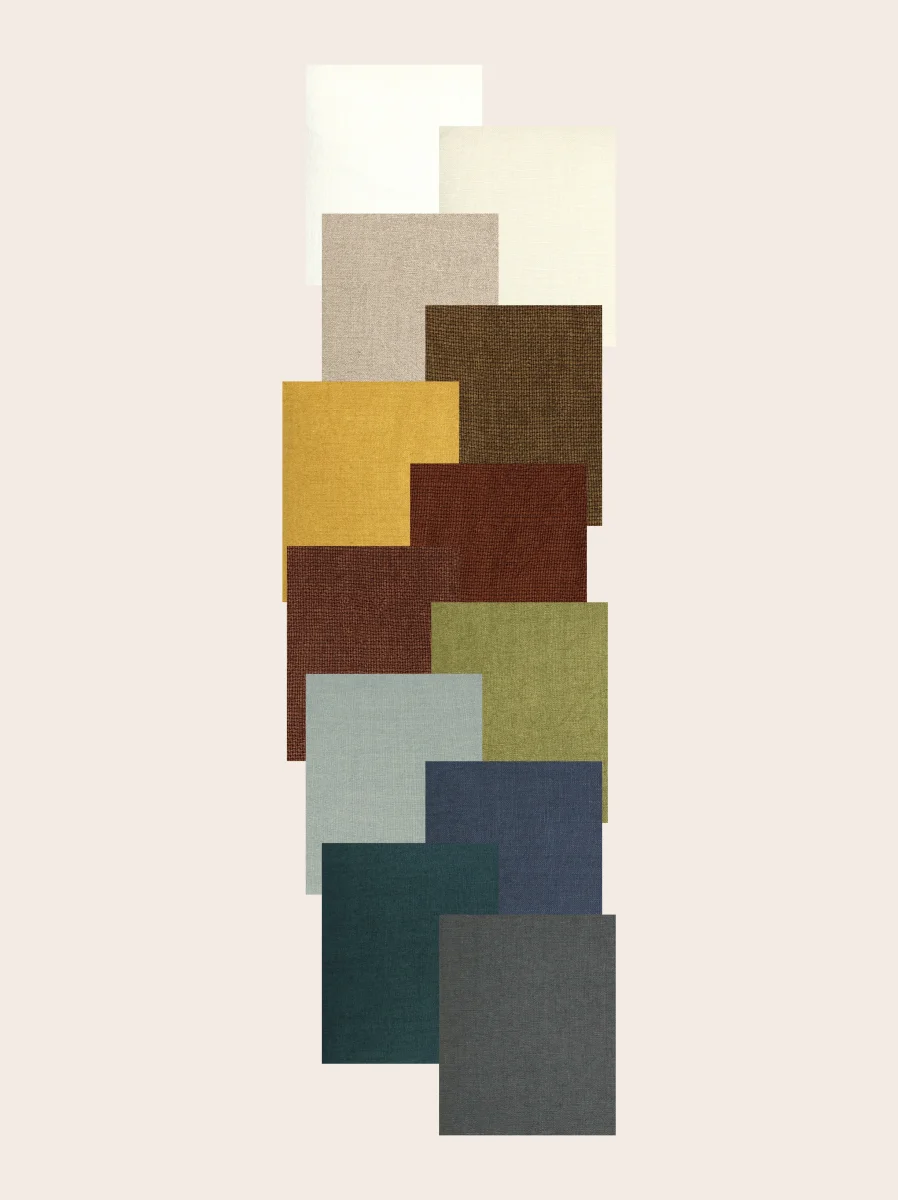 Sa palette d’unis, riche et nuancée, permet de composer des associations sur-mesure, en harmonie avec d’autres textiles de la collection, qu’ils soient imprimés ou en velours lavé.