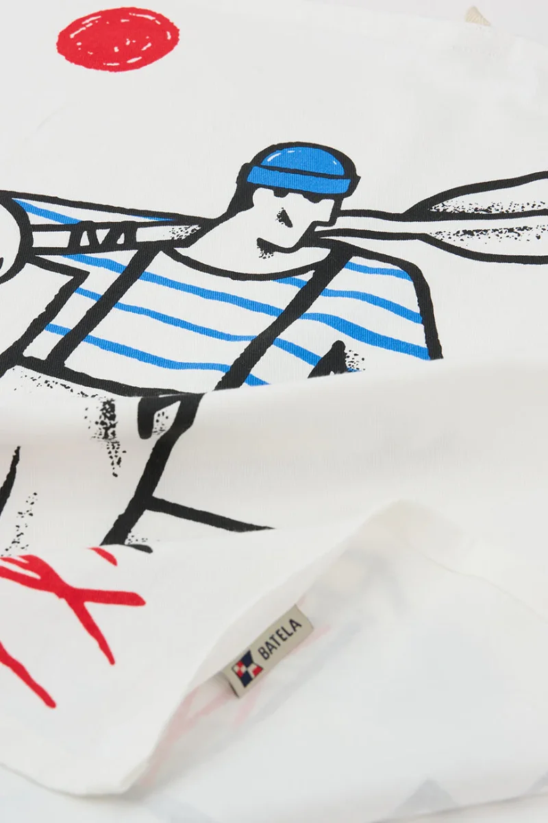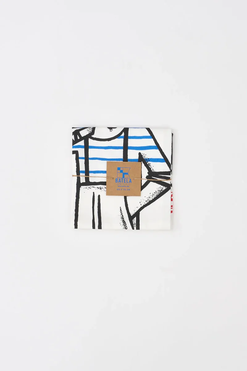 Trapo de cocina en algodón Drill resistente, con un divertido diseño de pescador que añade un toque marinero a tu hogar. Ideal para la limpieza diaria, este trapo combina funcionalidad y estilo