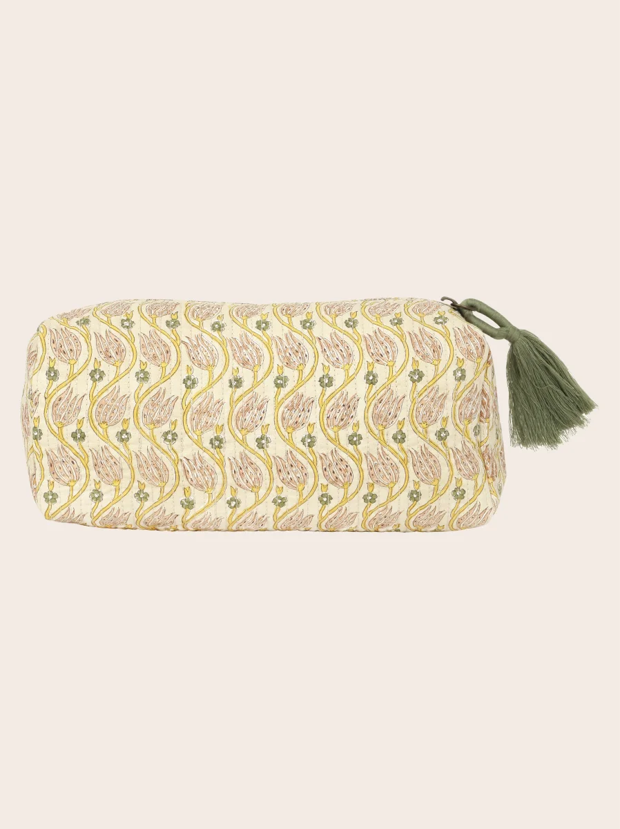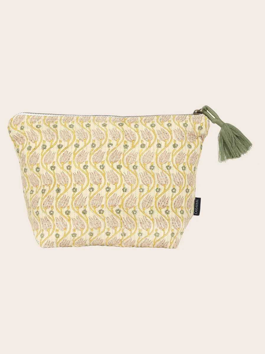 Iconique chez Caravane, la trousse Badoo se distingue par son imprimé matelassé réalisé au bloc à la main et son allure intemporelle.